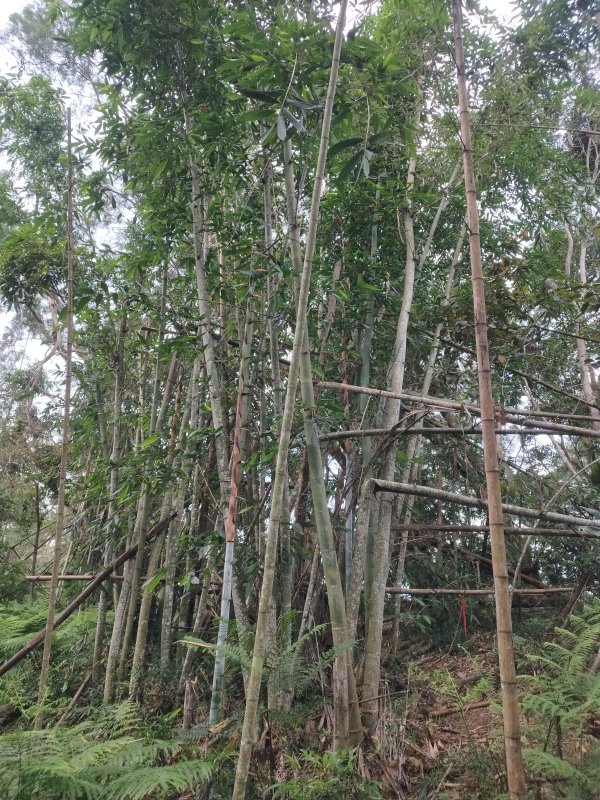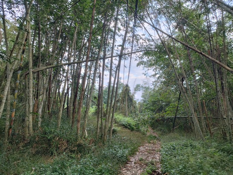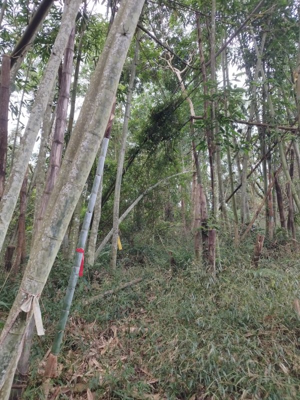 (那瑪夏)嘉南高三縣界山~4(從停車處往前一些到兩根電桿處,就能在左側竹子上看到登山條)