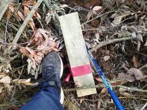 (旗山)下中寮山~6(過民宅後沿著水泥路,走到不能再走的地方即為登山口。同好已經在地面上噴上三角點指示)