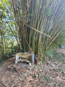 出馬路接山徑,路在竹林左側