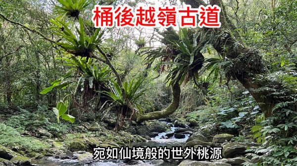 桶後越嶺古道,連接新北市烏來區(孝義)與宜蘭縣礁溪鄉(小礁溪),翻越雪山山脈北段,沿著桶後溪而行的一條步道。溪水清澈、原始森林茂密、林相豐富,且受人為開發影響較小,宛如仙境般的世外桃源,被讚譽「不到桶後,不知台北溪流之美」,為雙北地區溪流景觀最美的步道之一。桶後越嶺古道原為泰雅族人的獵徑與遷徙古道,日治時期曾被改建為隘勇線及通訊、電力線路的保線路,與「哈盆古道」及「福巴越嶺古道」並稱為烏來地區的三大著名古道。