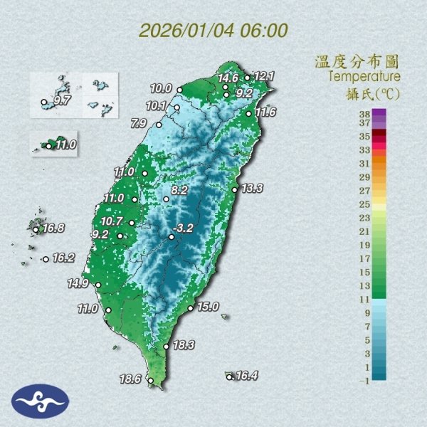 接下來一週的清晨仍然會出現輻射冷卻,中南部平原地區清晨低溫都會出現10C以下低溫,日夜溫差也還是會超過10C以上,身體保暖設施是要做得確實點,有興趣者不妨觀察日間的可見光衛星雲圖,雲層稀疏或是無雲區都會是好發區域,1/5(一)晚間起大陸冷氣團南下降溫,1/7(三)與1/8(四)則是最冷的時段,週五起冷氣團逐漸減弱,溫度再度回升,幸運地是這波降雨並不如上週來得明顯,濕冷的感受也不如上週來的強烈。