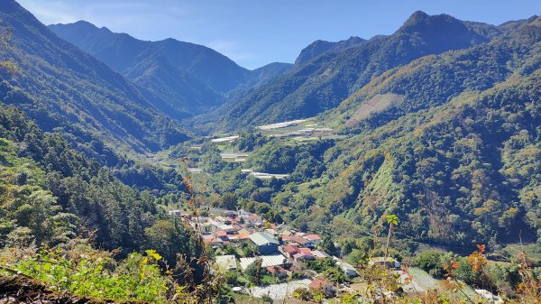 陳有蘭溪與周遭層巒疊嶂的景色映入眼簾,是古道最精華的路段之一,雖然是中級山步道但能夠看到高聳的百岳山景