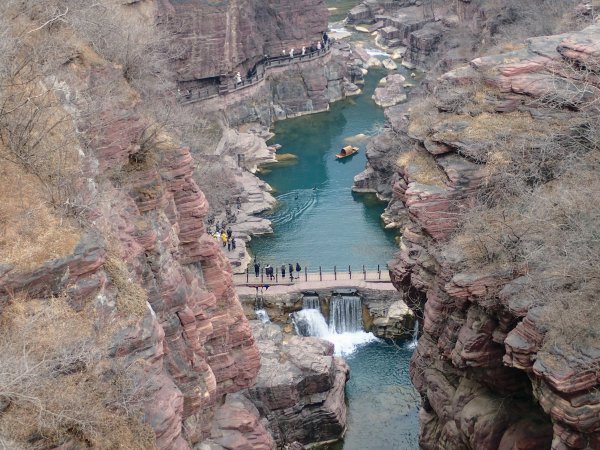 紅石峽谷是雲台山景點的精華, 重點推薦, 有“盆景峽谷”之稱, 當你步入谷中的棧道, 紅色的山石撲面而來, 這裡屬於丹霞地貌, 岩石都是紅色的, “紅石峽”因此得名, 整個峽谷還是一個地質博物館, 峽谷內分佈著各個地質年代的岩石