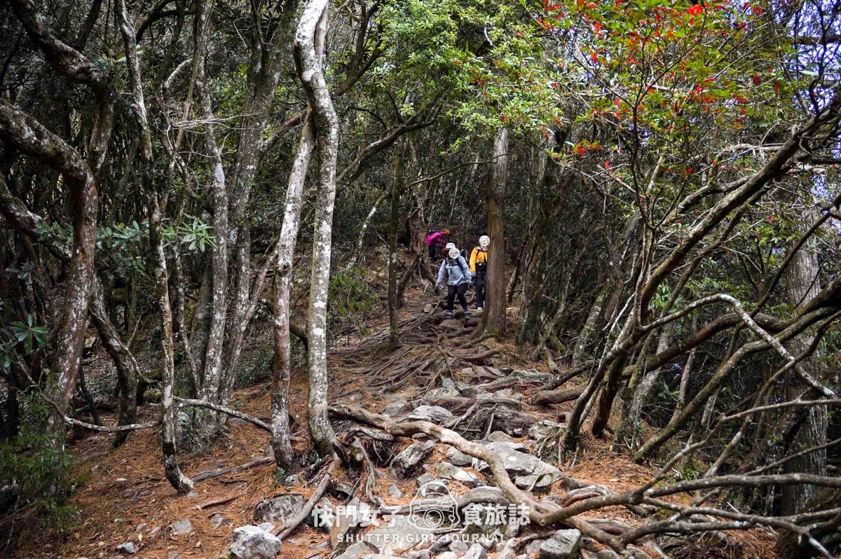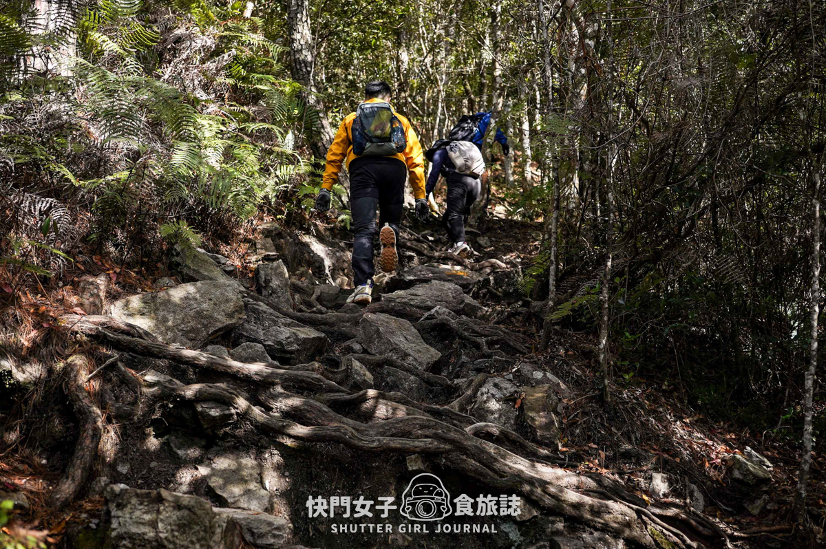 而右轉之後的路也算是好走,但已經沒有人工的階梯式步道,偏向原始的樹根、泥土森林小徑