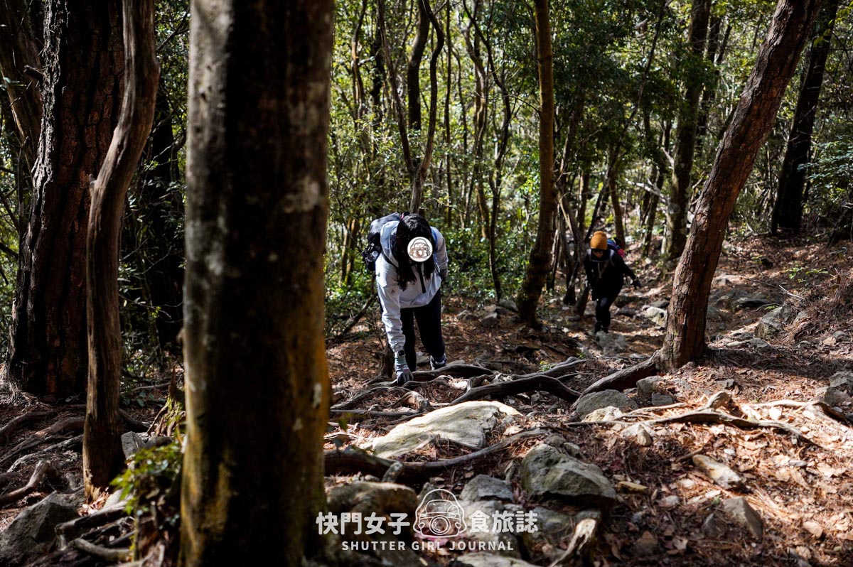 因為已經接近鳶嘴山的山頭,所以除了拉繩花體力以外,這邊的踩點都不是平的,而是斜的噢!畢竟鳶嘴山是尖尖的,所以我們的斜度會越來越高