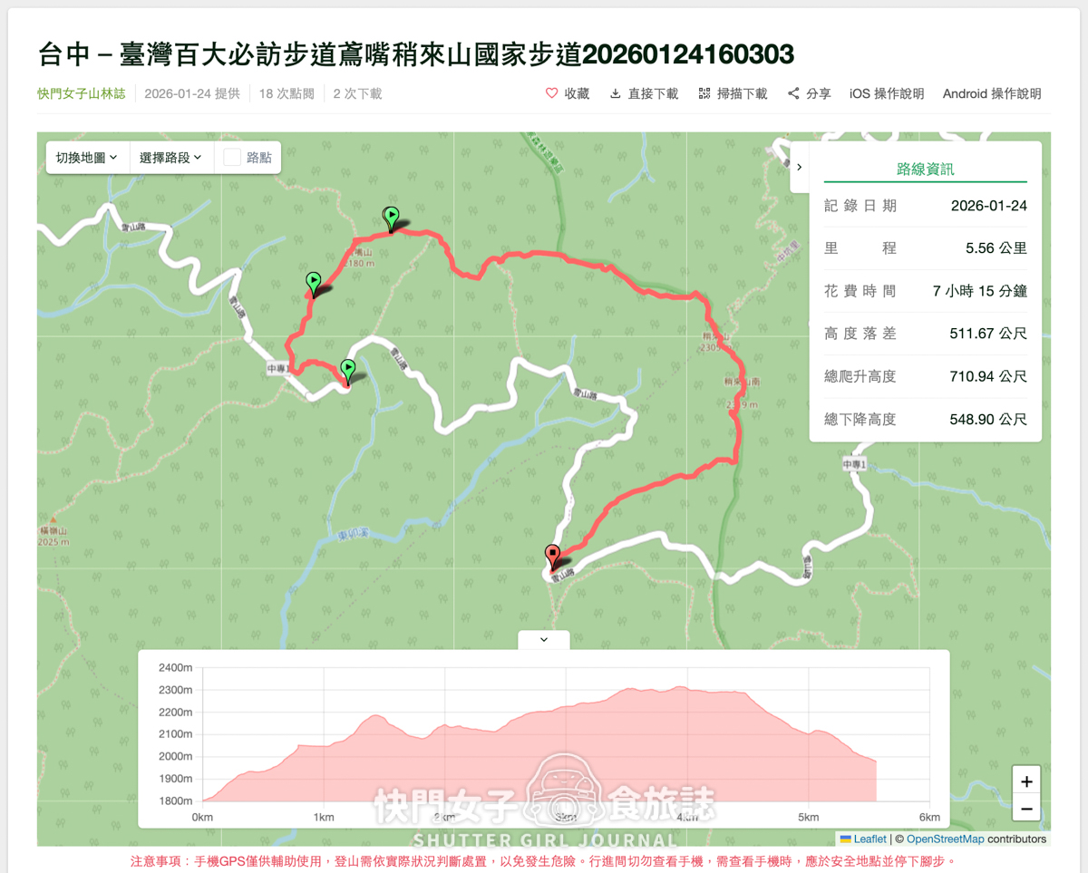 路程大約5.5公里,含排隊拍照+休息吃午餐,共花了7小時左右,以下截圖是我們爬過的GPX可以參考參考