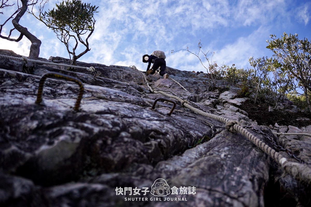 不論是上山還是下山都算是非常有挑戰性,各種攀石拉繩路段都有,但是建議建議建議怕高的人真的要三思