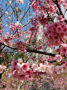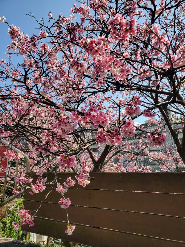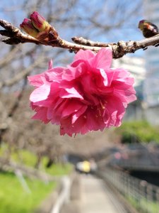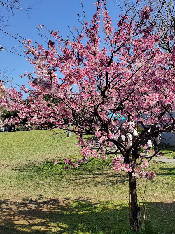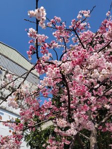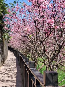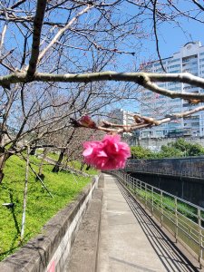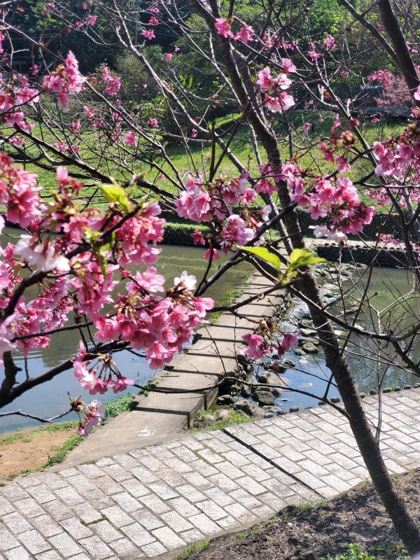 路旁的櫻花也正盛開