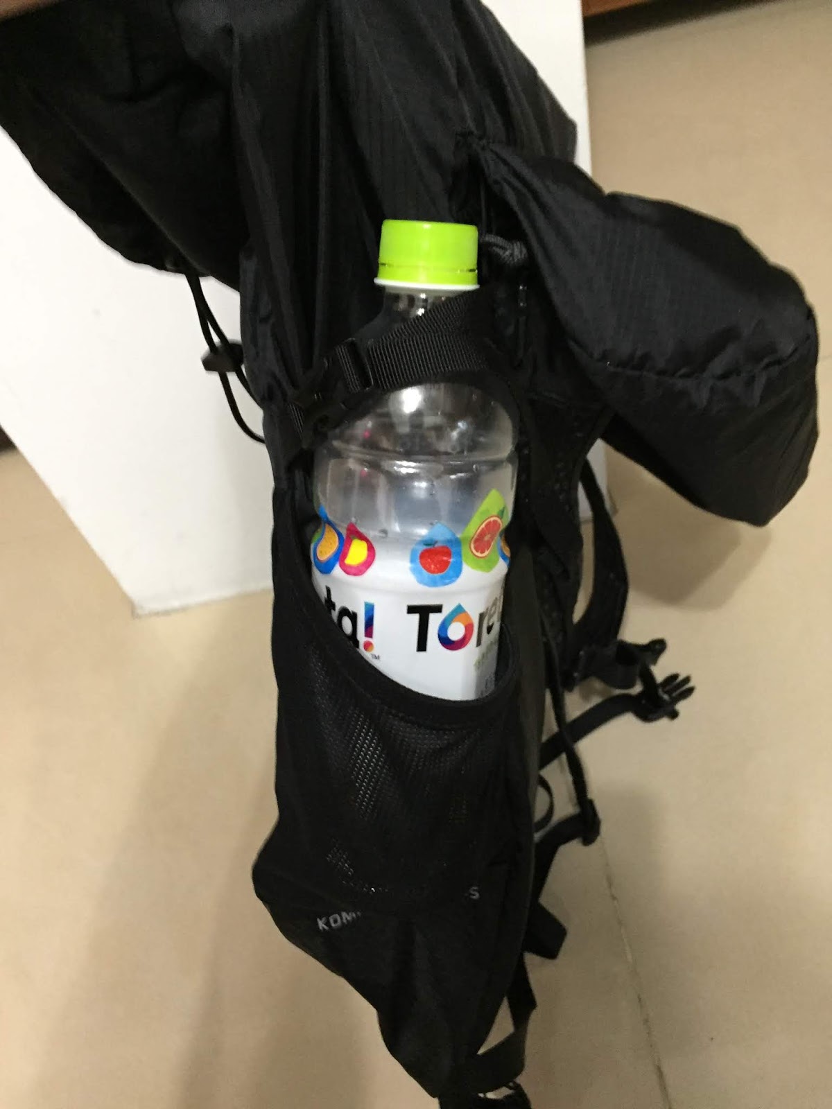 2.左右網袋太淺,一般寶特瓶放入後如果大力彈跳會飛出來,如果反插的話會比較好,如果使用這款背包還是用水袋好一點,或是像圖片一樣再用上面的收束帶加一層保護防止跳車。