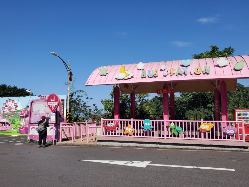 好粉紅的車站,可惜只有假日有公車,只好繼續往下走