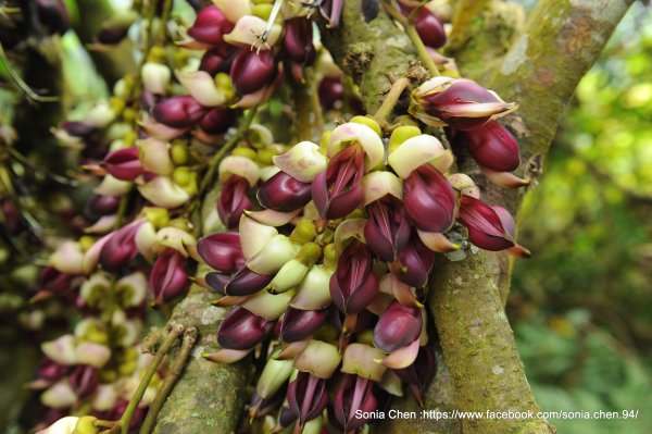 血藤花屬「幹生花」,呈深紫色,難以對焦,