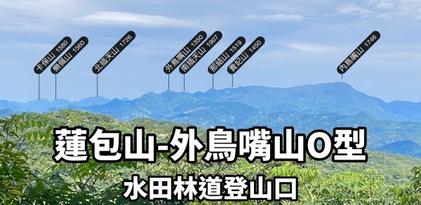 外鳥嘴山海拔1350公尺,海拔雖然不高但山勢陡峭高低落差700公尺以上,從水田林道經蓮苞山登頂總爬升約850公尺,來回約8.5公里,一般腳程約5-6小時左右,
