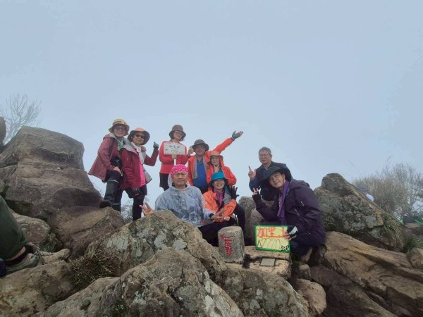 努力奮鬥4個多小時,終於攻抵加里山,天氣不佳,白牆迎賓,無緣聖稜線和雲海,山頂是許多巨石堆疊而成,今日山友不少,或坐或立享受登頂喜悅