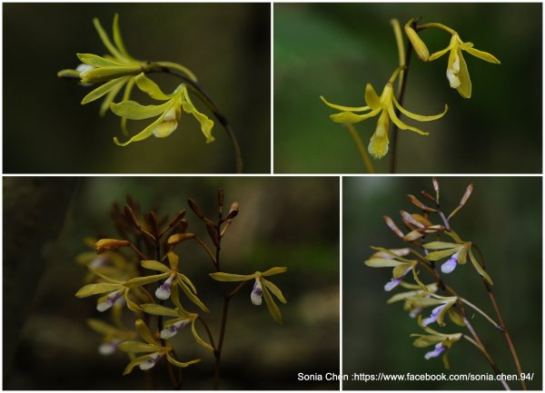 花色比紫皿柱蘭偏向黃色或淡黃色調(顏色變異體)