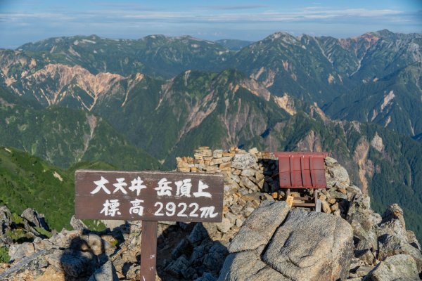 大天井岳,位於表銀座路線中央,連接燕岳和槍岳,海拔2922m,是北阿爾卑斯中,視野層次最豐富的山峰。登頂後展望極佳,可清楚眺望廣闊稜線,山體由花崗岩構成,附近有大天莊,是表銀座路線的重要據點。