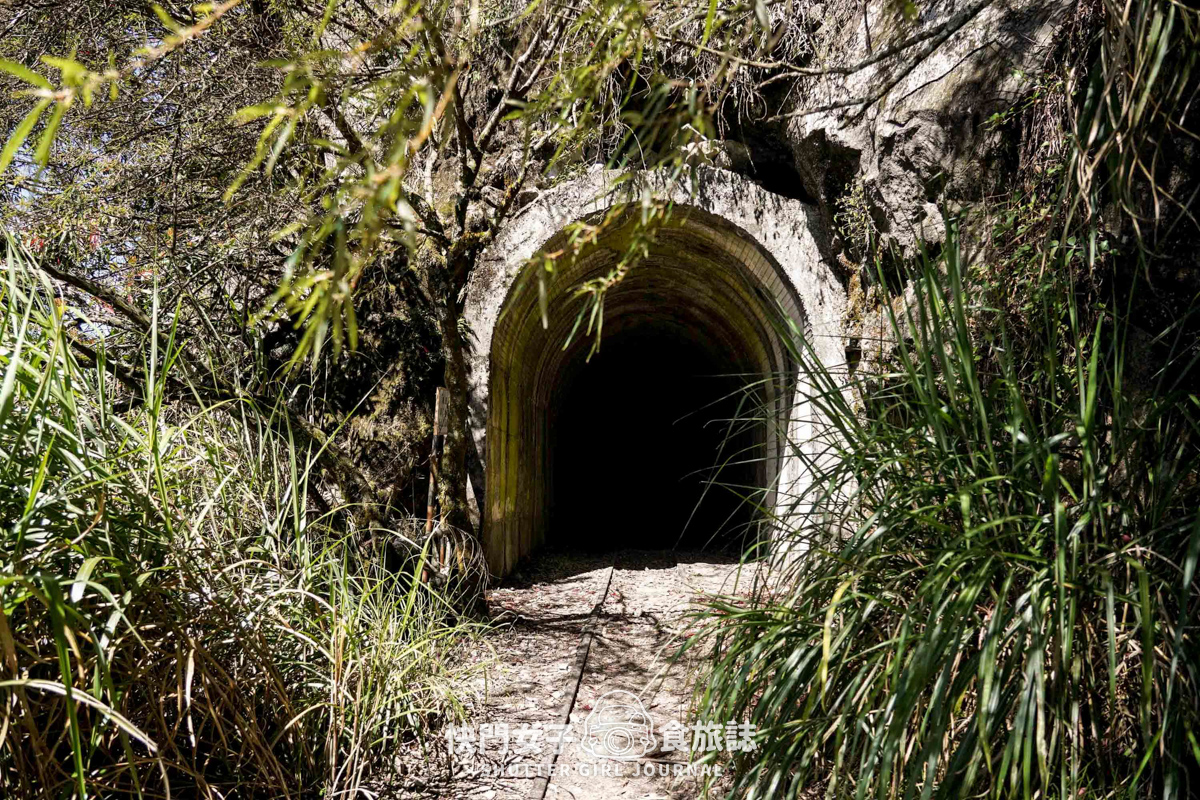 這幾個隧道都算短短的,有微弱的自然光,可以不用頭燈也沒有關係,但想要看得清楚點有些太黑的我還是會用頭燈