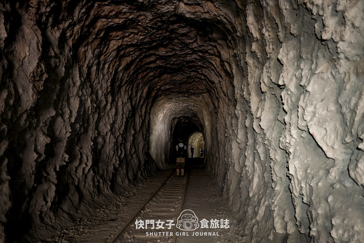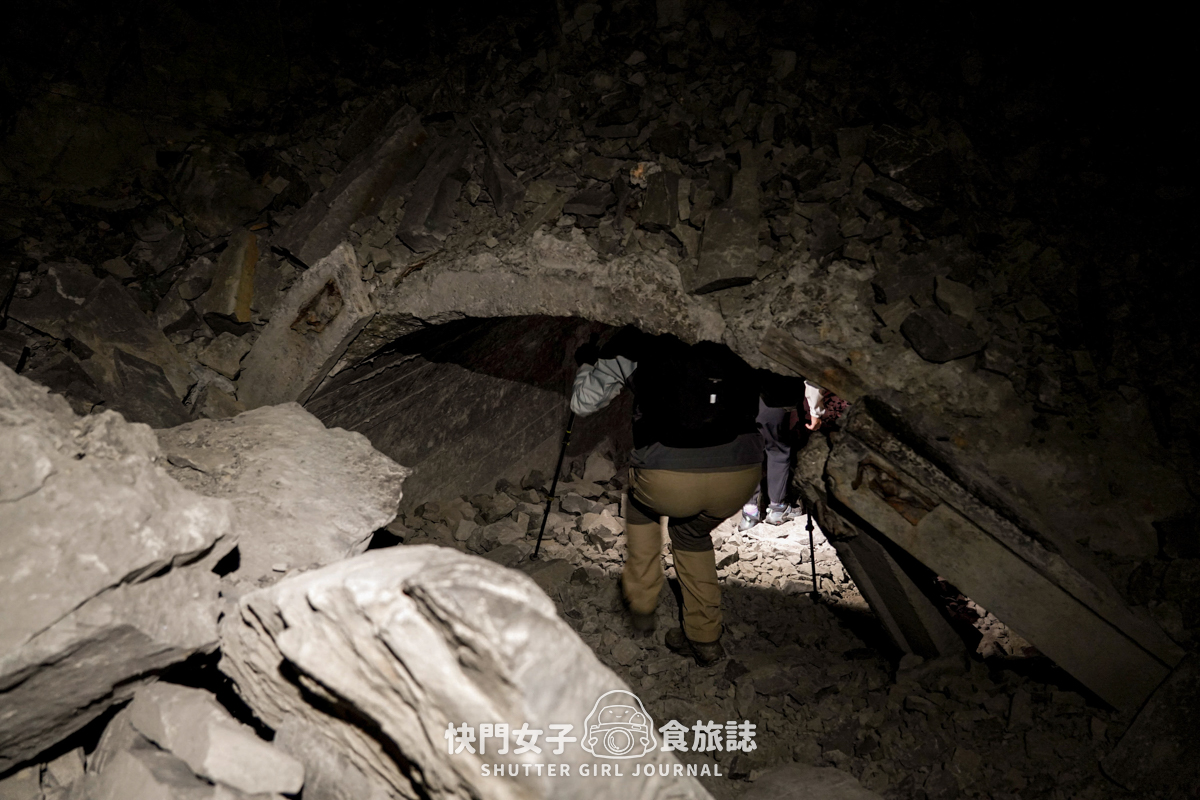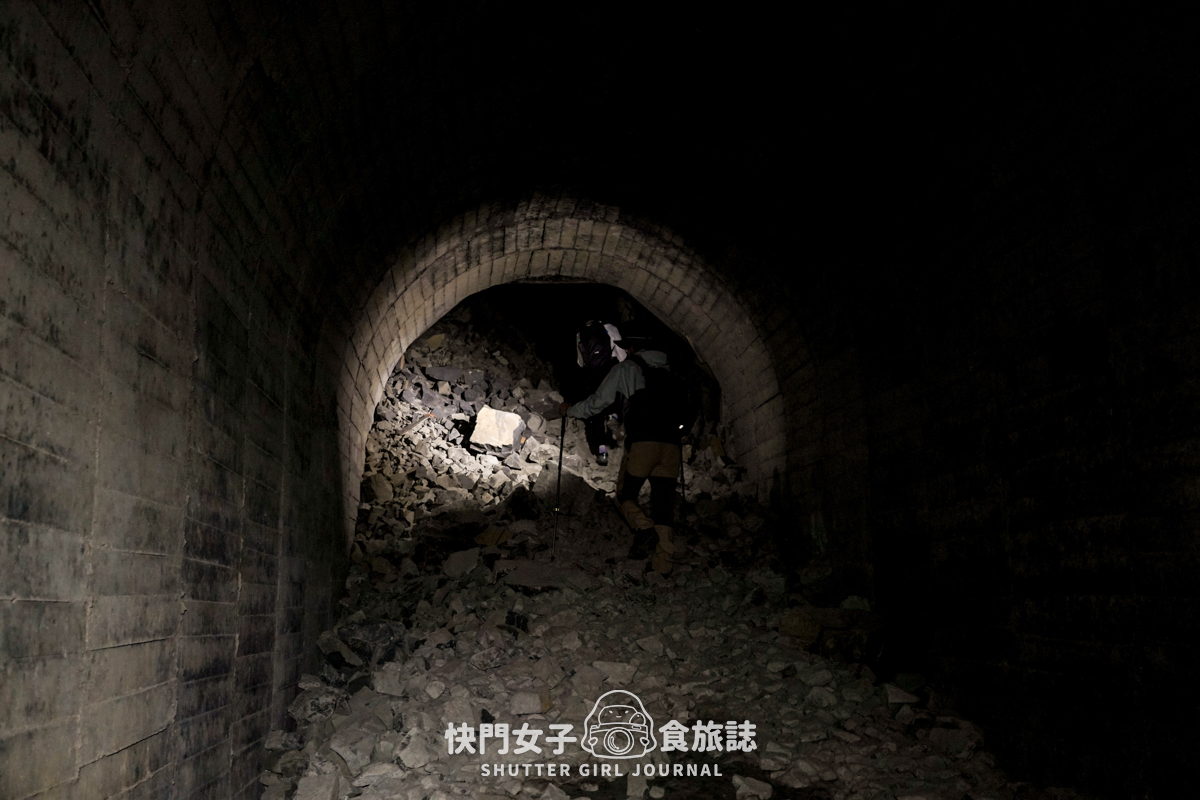 剛剛的明隧道是有自然光可以透進來,接下來的隧道則是伸手不見五指的,這也就是為什麼需要帶照明設備的原因