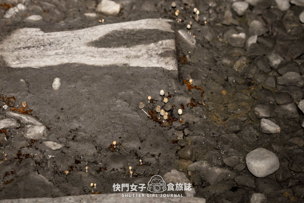 因為照不到陽光,隧道內很涼爽;有看到地上似乎是動物的糞便?另外有水池、濕氣比較重的地方還有看到蕈類喔