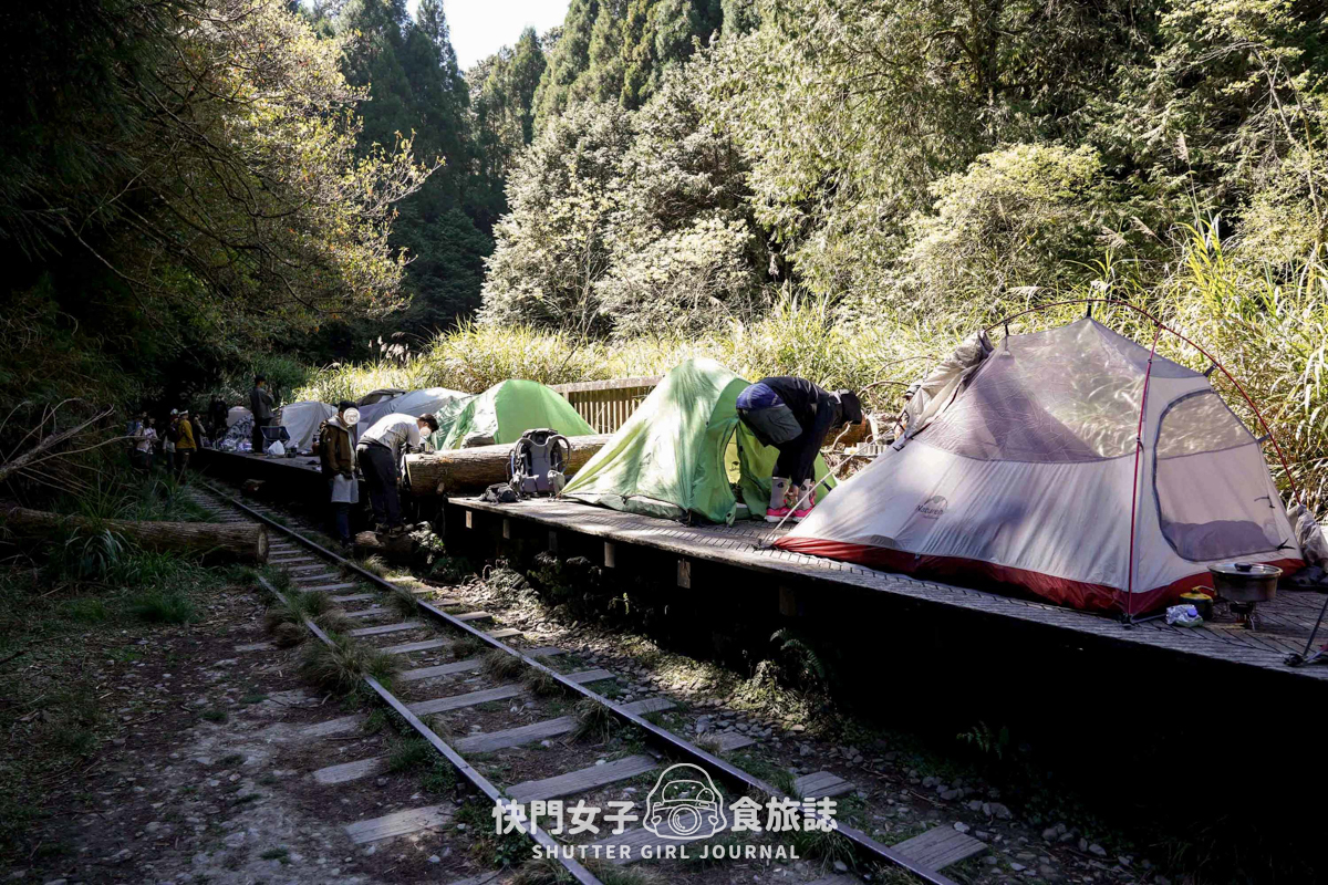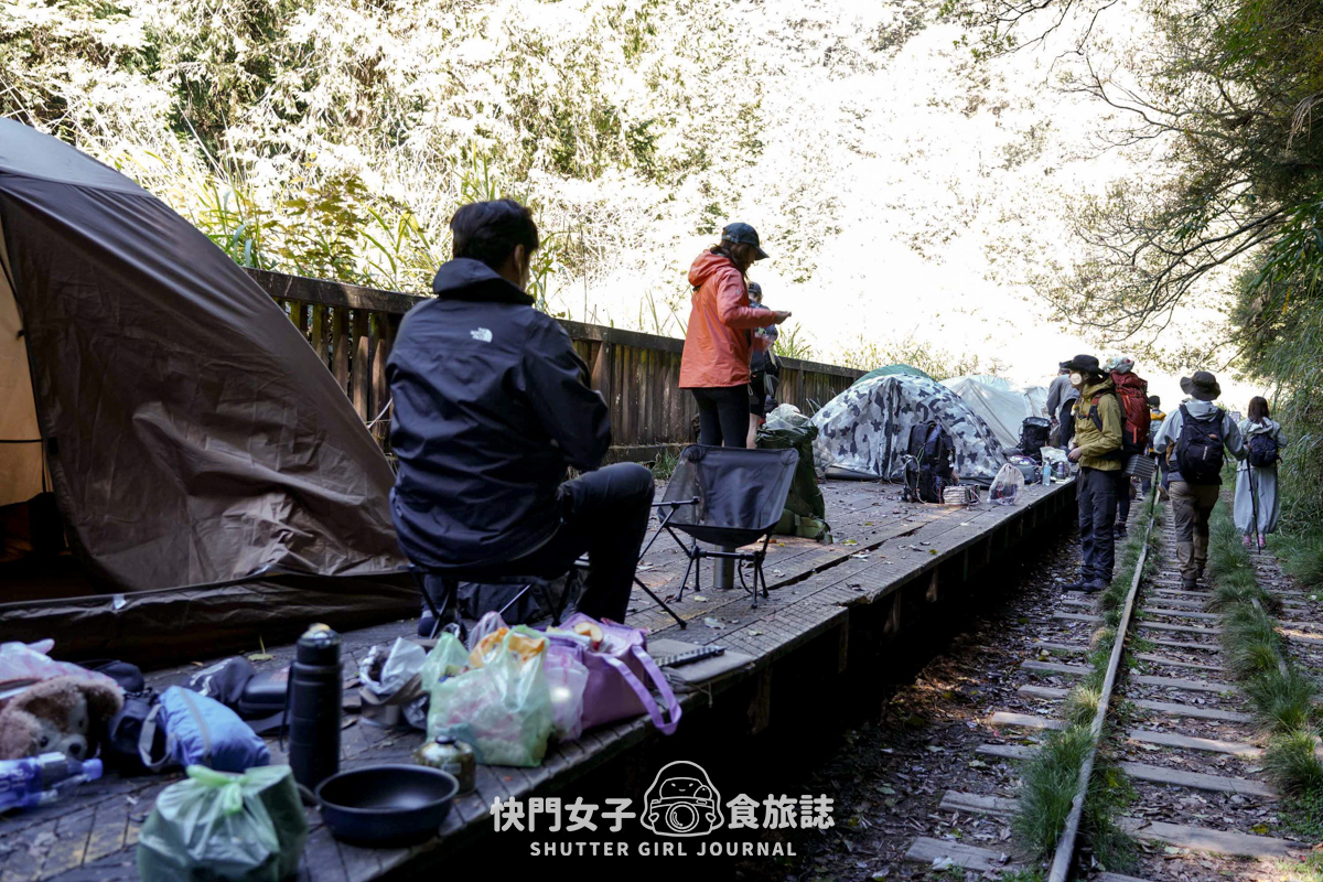 紮營的地面就是塔山車站的月台上,平坦的木棧月台變成紮營的地方真的是太適合了吧🤣!不但不會睡在凹凸不平的土地上,空間大小也是非常的剛好