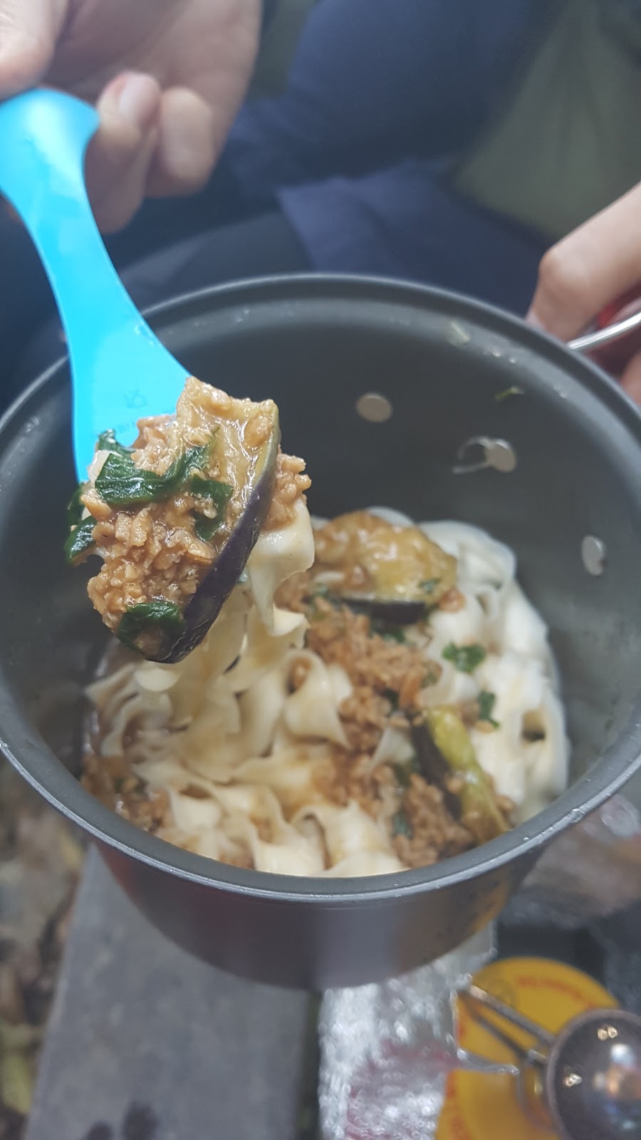 回到檜谷山裝是下午三點多,上山的速度其實蠻快的,但是下山的時候我們月經剛好都來,而且每次下山對我們來說都有一點吃力,回到檜谷的時候大概是下午三點半,因為早上實在太操,我們還小睡了一下才起來煮晚餐。