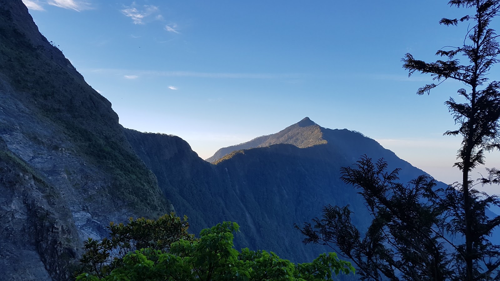 雖然聽說下午在檜谷山莊的樹林若看到光線灑進來,則當日可以在喜多麗看到夕陽,可能是我們不會看吧? 總之那天在喜多麗沒看到夕陽,但是有等到雲退掉以後的南大武山,就這樣高高聳立在喜多麗斷崖之前,超美的。