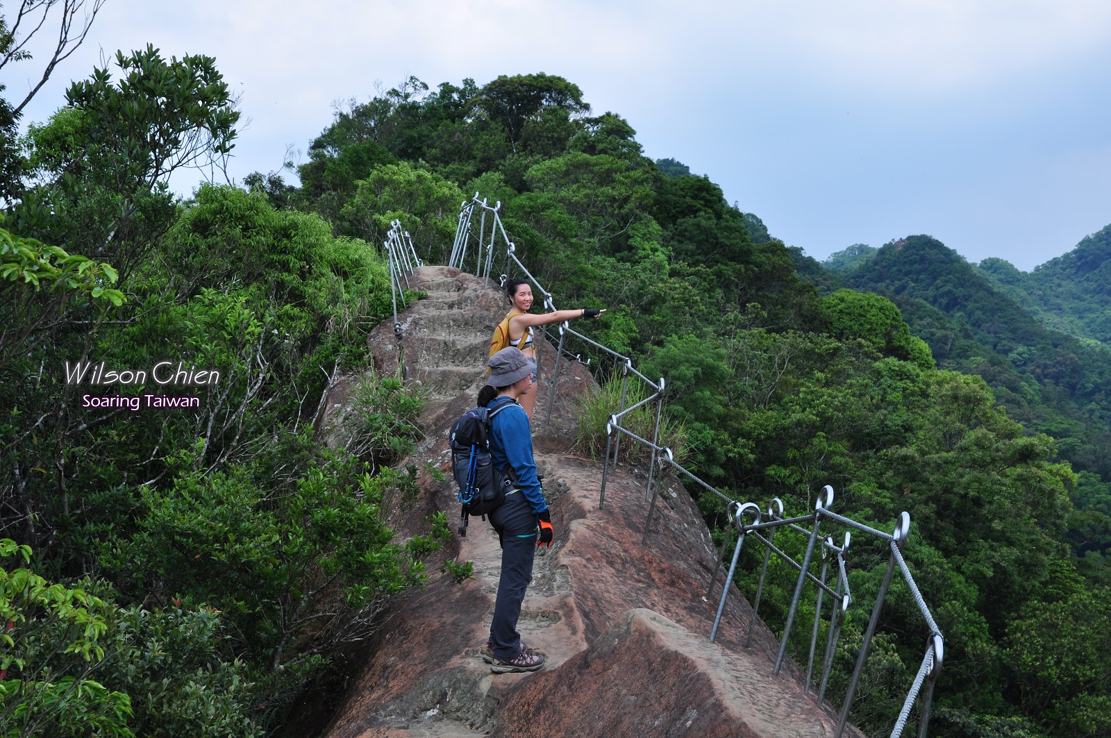 這段岩稜路還蠻安全的, 都有鋼架與繩索圍著, 且岩稜也鑿成較平坦的路,