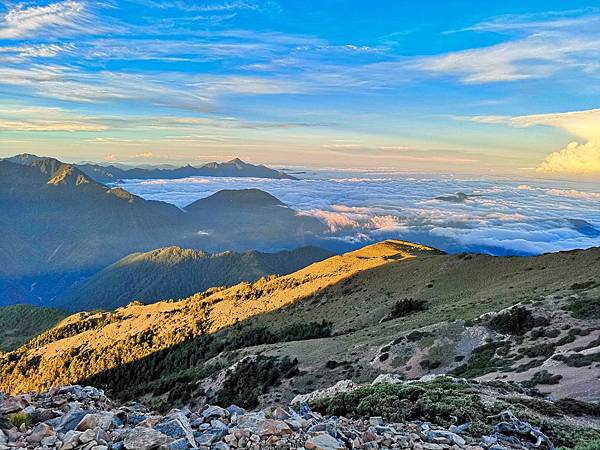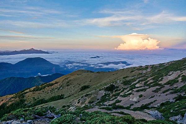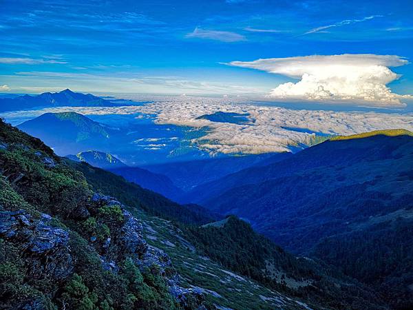 (大片的雲海跟遠方的關山,可以看到南邊有個很大的雷雲包,後來得知果真南部下大雷雨)
