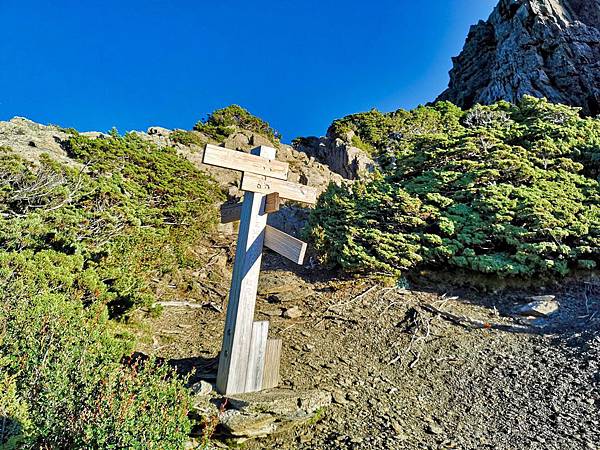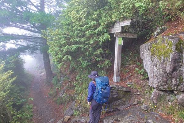 06:10 四叉路往南峰出發,這裡可以由南峰南邊的岩溝上攀,沿路的記號明顯