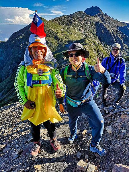 07:15 東小南山及南玉山叉路,這裡遇到大腳ㄚ的前輩 陳前,預計還會在圓峰山屋住兩個晚上,拍照留念,互相打氣