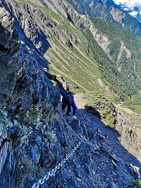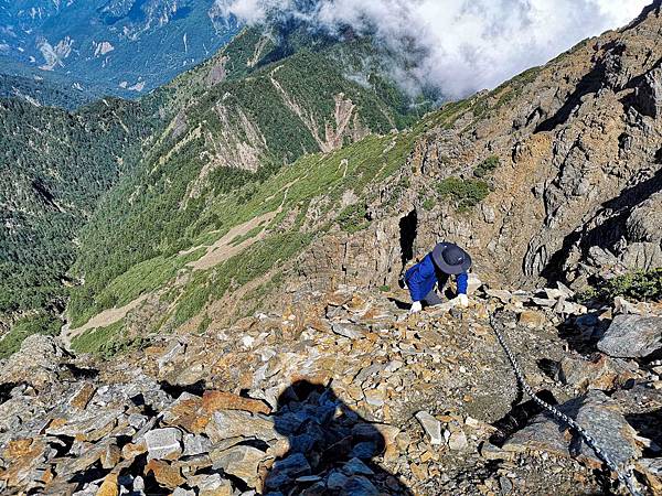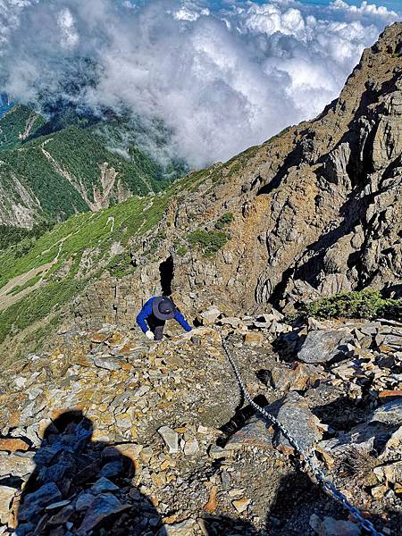 09:15 開始進入鐵鍊區,真的叫”爬”上玉山了,一路上拉著鐵鍊,基本上有驚無險,爬起來超爽的!