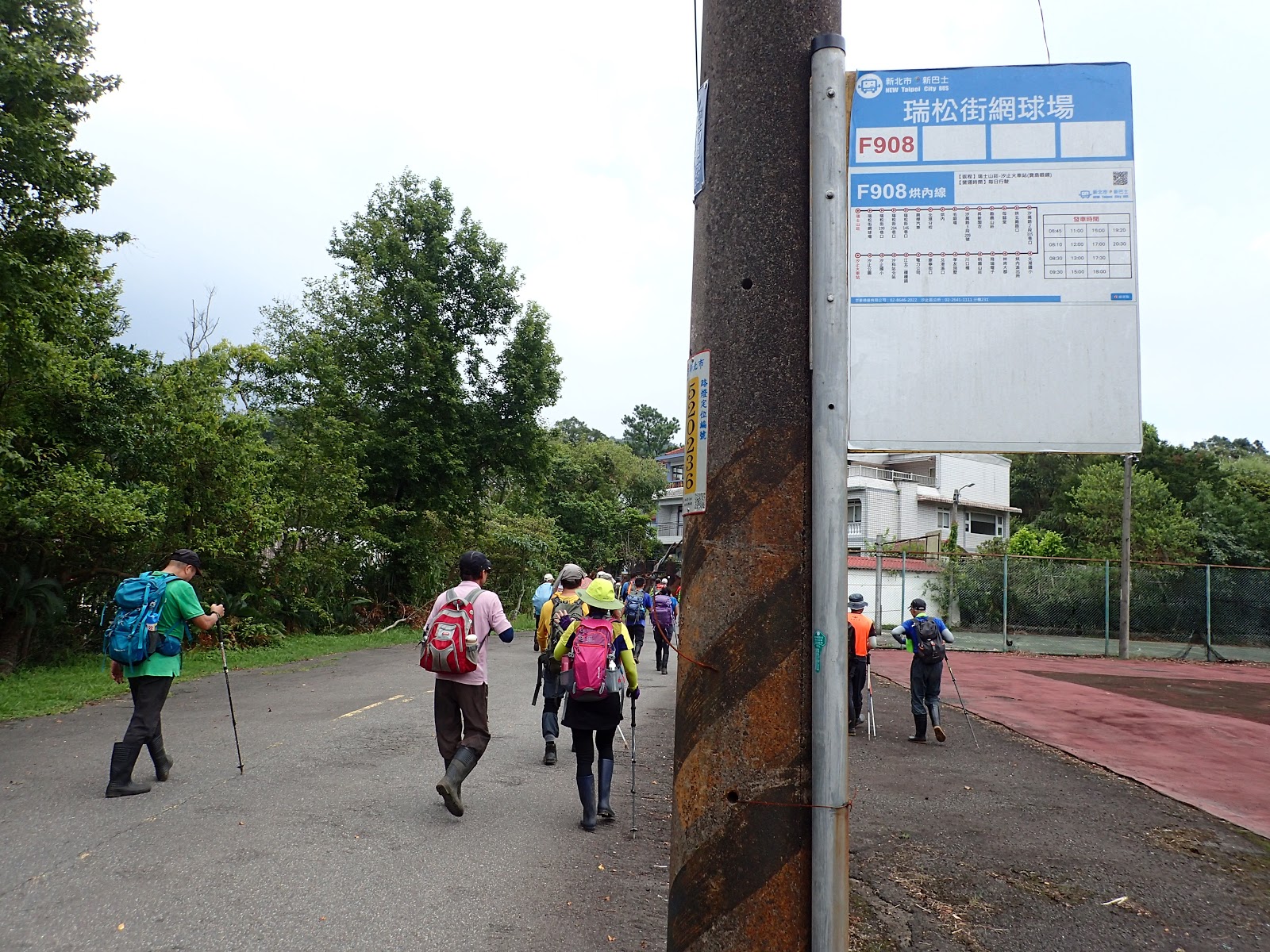 十四坑山登山口, 基哥說這裡可以坐公車撤退, 嗯, 好的來溜, 旁邊一群好友鼓勵喊走啦, 說後面路平容易