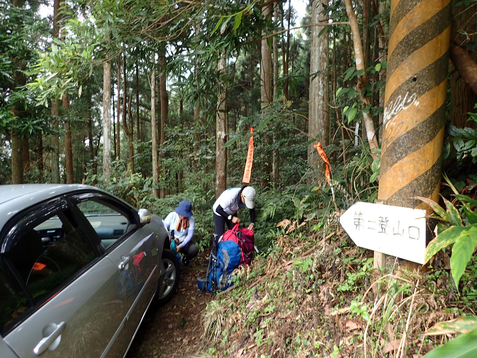 9:38 上到第三登山口岔路口, 右往第三登山口, 左往高台山, 休息一下等到齊