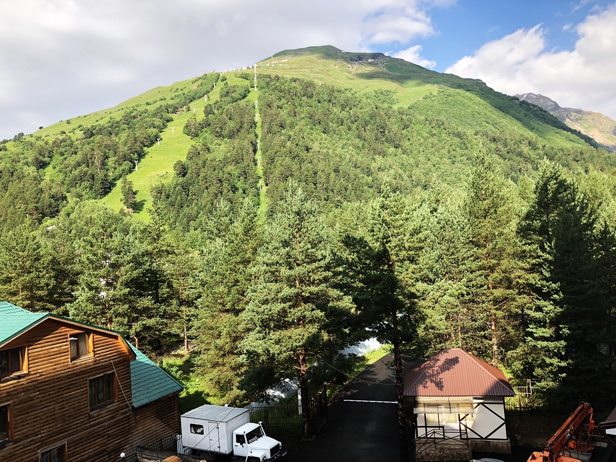 Trekking Package 的第一天沒什麼行程安排,就簡單的只要從莫斯科搭飛機過來礦水城(Mineralnye Vody / Минеральные Воды)、然後再轉接駁車到小鎮上的Hotel住兩晚。我們住的旅館在Teskol的小鎮上,Snow Bars Hotel,海拔約H2,052M。