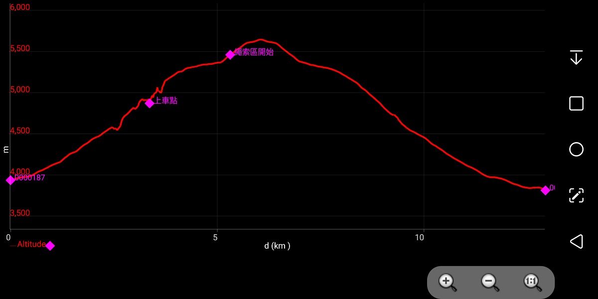 | 隊友的GPS紀錄。我們攻頂這天爬升的狀況,大約海拔H5,000M以前是搭雪貓車 |
