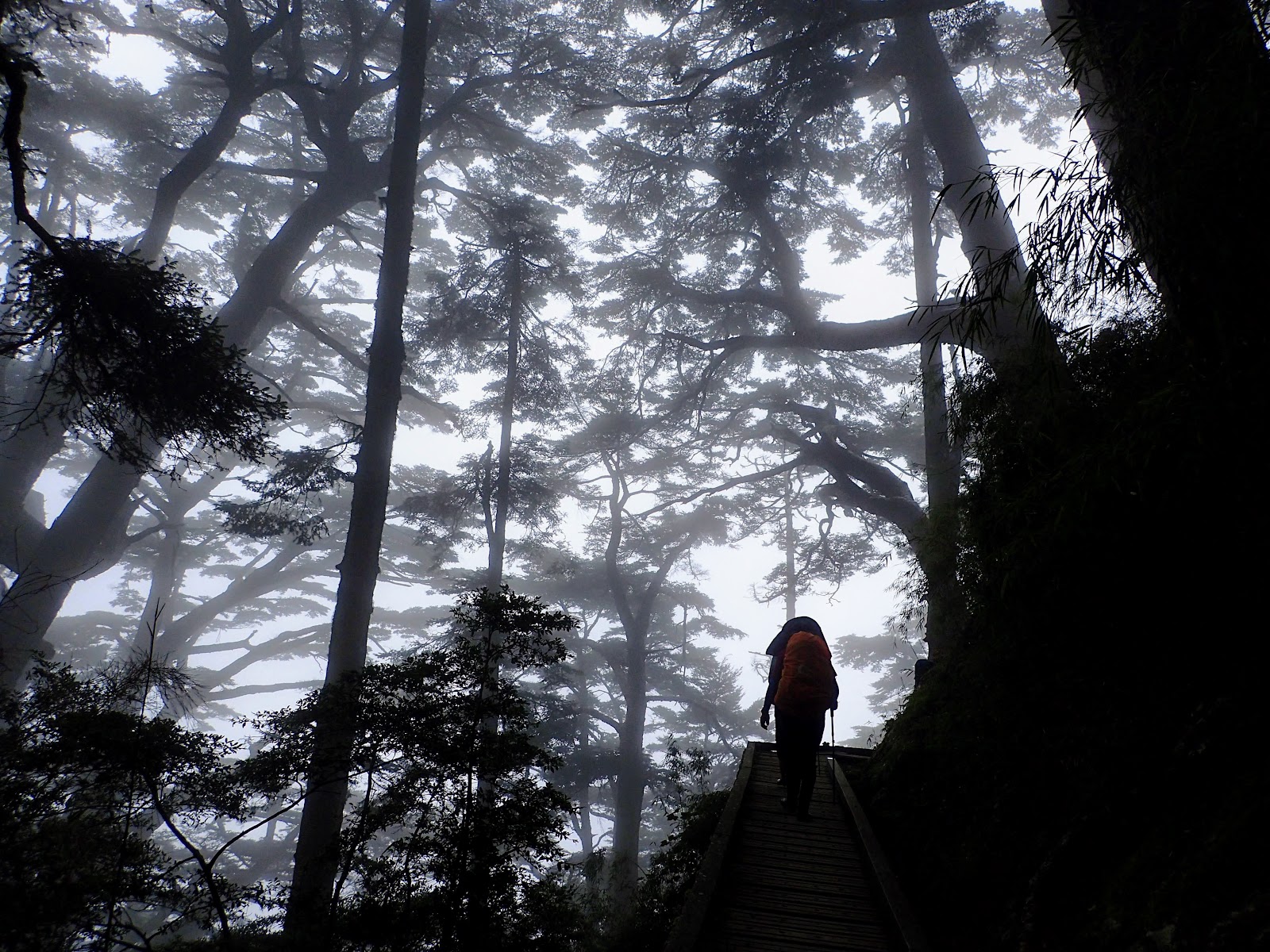 5:20出發往主峰, 睡飽的彪哥帶頭往前衝, 一下子不見人影