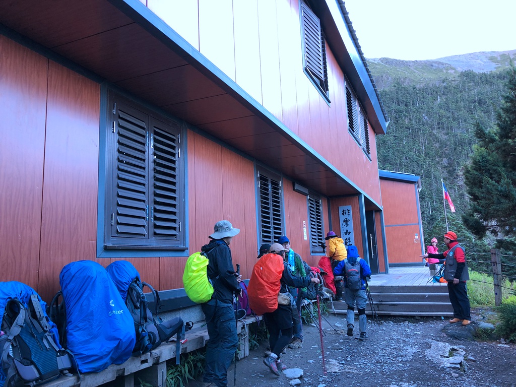 Am 6:40 到達排雲山莊。老實說我有點訝異,因為以我一開始估計的行程,是2:00 準時出發,6:40 到達排雲山莊,可是我們今天因為等晚到的隊友而晚出發了快一個小時,可是卻還同一個時間到達,可見我們前面那一段走得多快.....XDDD
