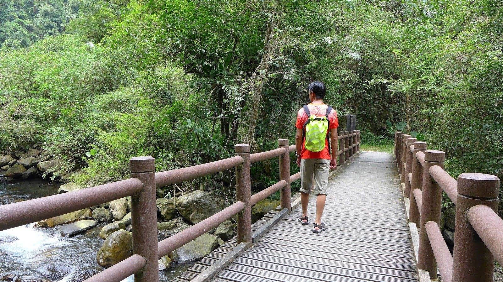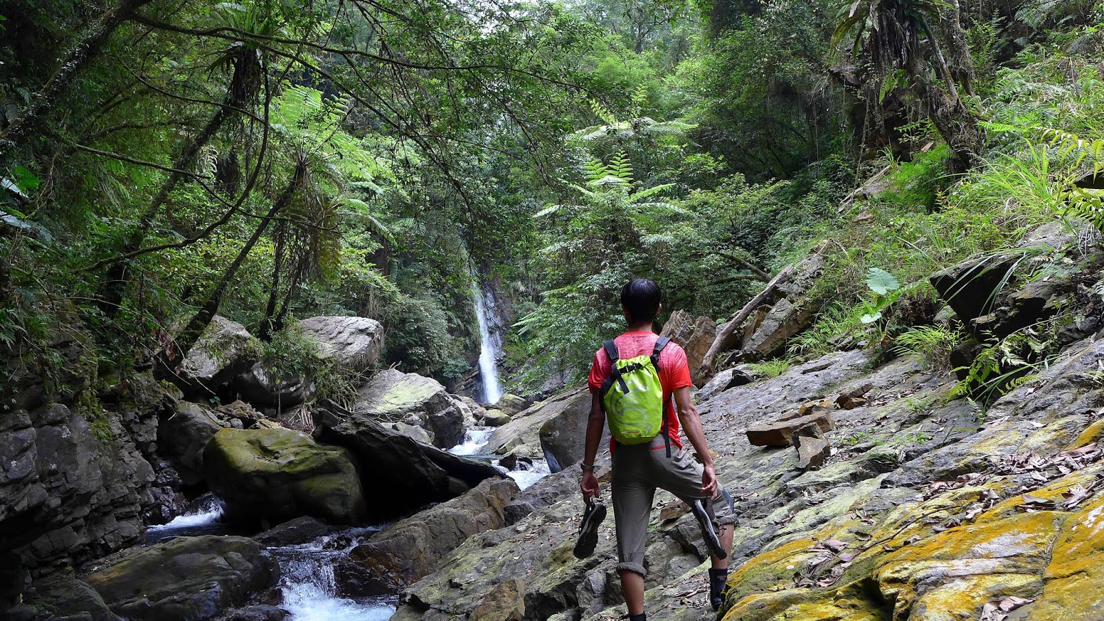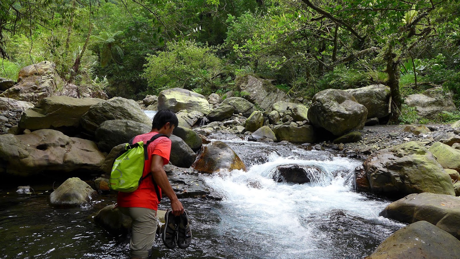 換上溯溪鞋後,KEEN因為塞不進包包,不過也不難拿,直接用手提著走,如果以後還有類似狀況,要帶條短繩綁起來掛著。