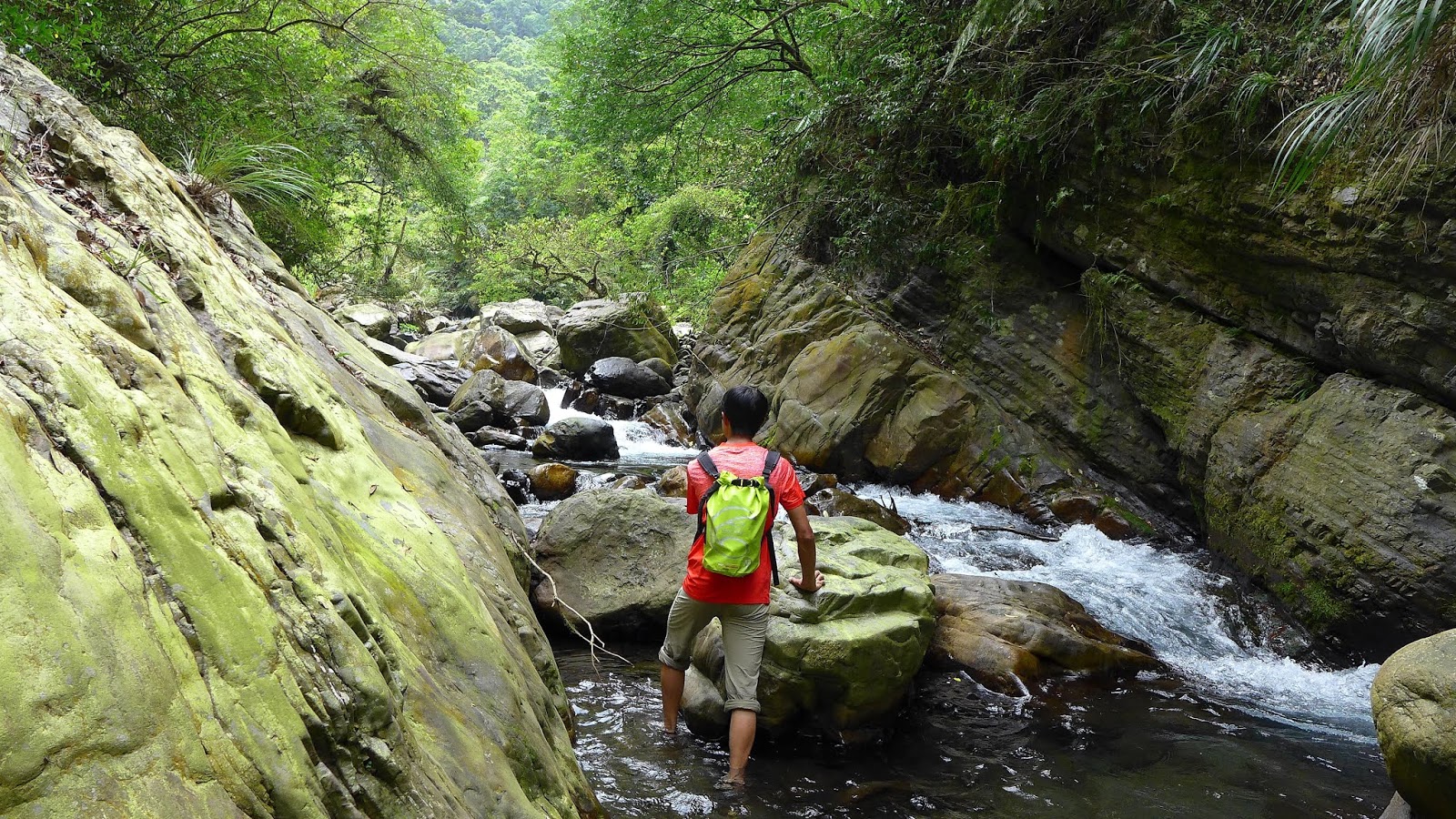 平常溯溪就直接給它衝水瀑上了,今天拍照就好,想辦法繞過