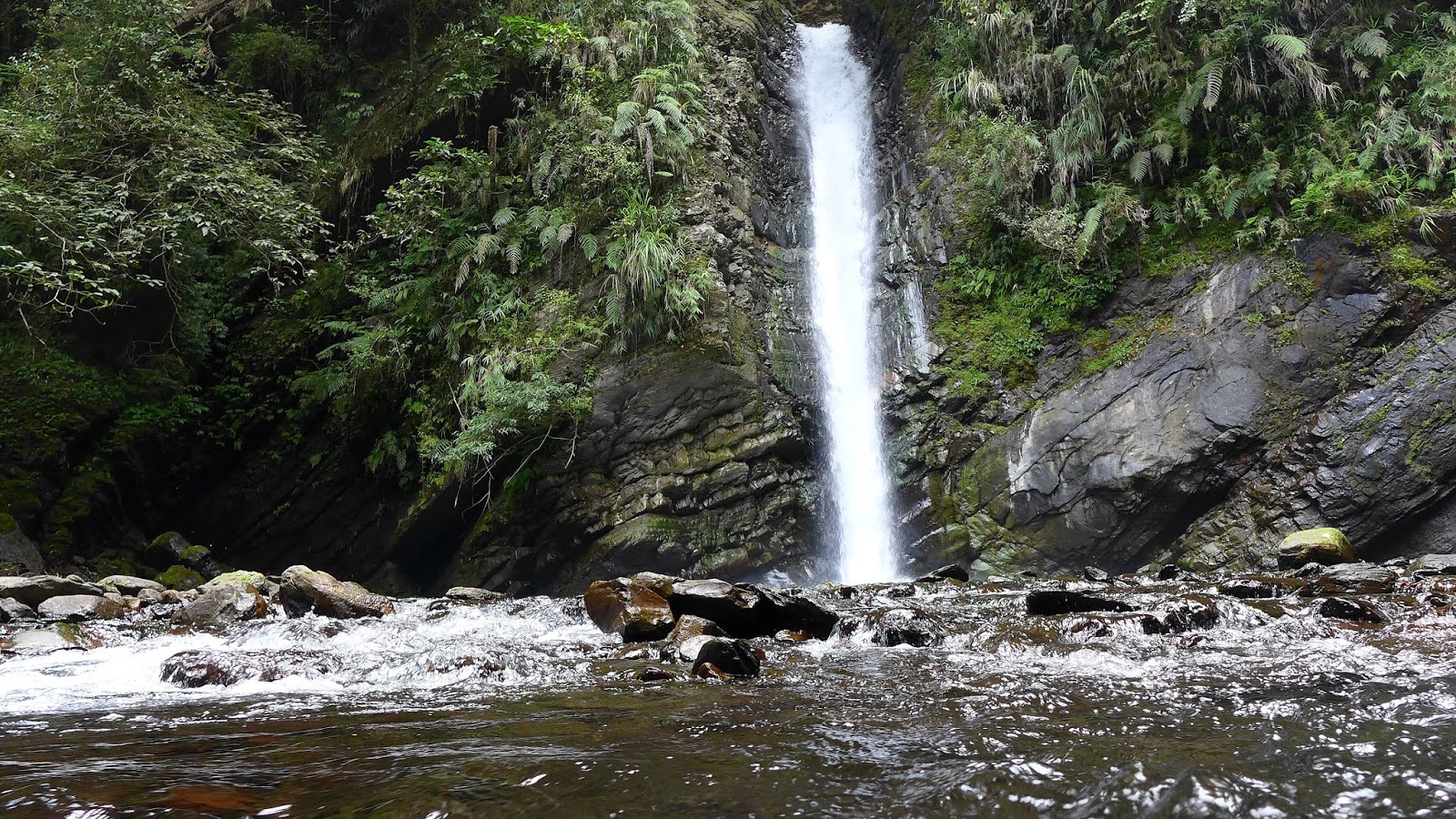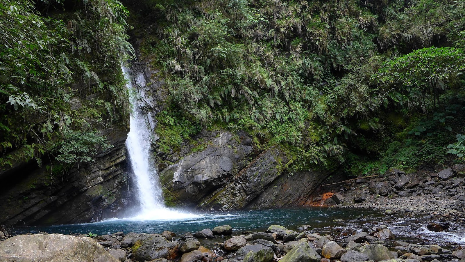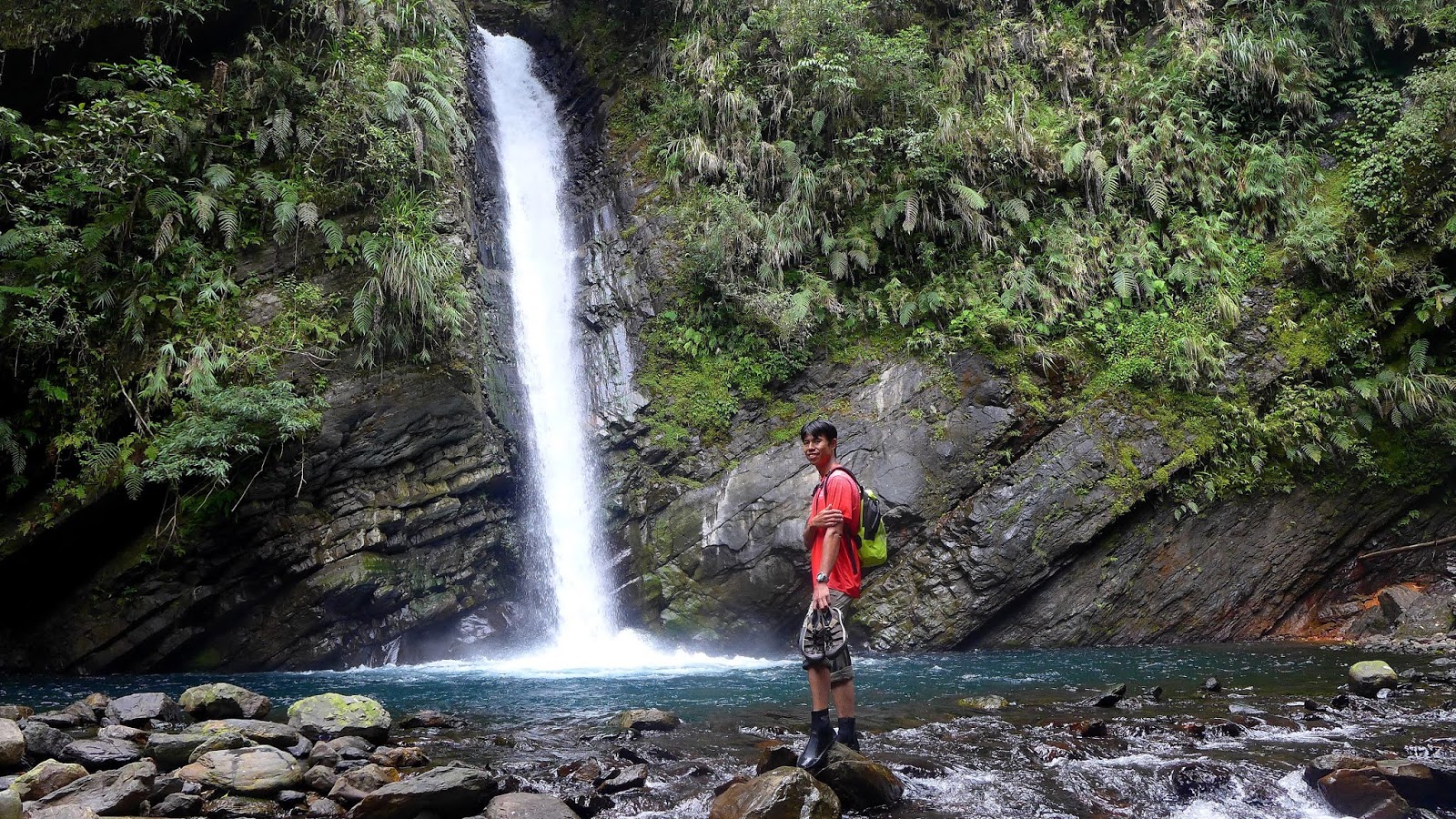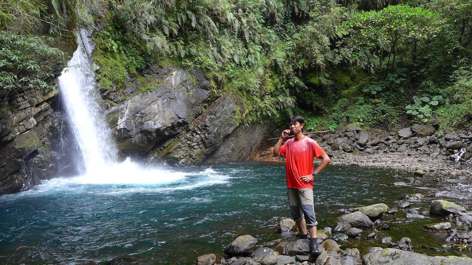 終於抵達破噹瀑布,水勢驚人,瀑前是一座大深潭