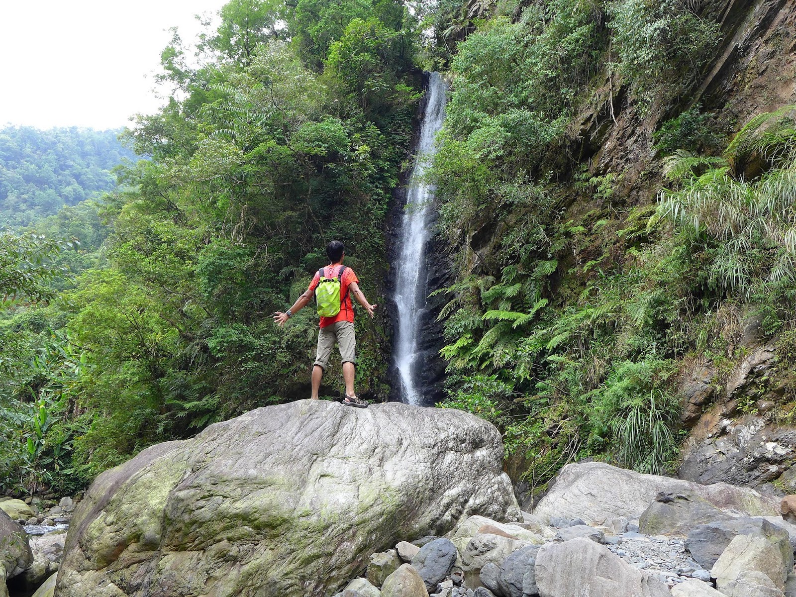 拍完開始回程,來時因為沿途抓拍風景,所以速度較慢,回去除了專心下溯外,加上已經濕全身了,就整個放很開不閃水,不用一會就回到觀瀑臺。
