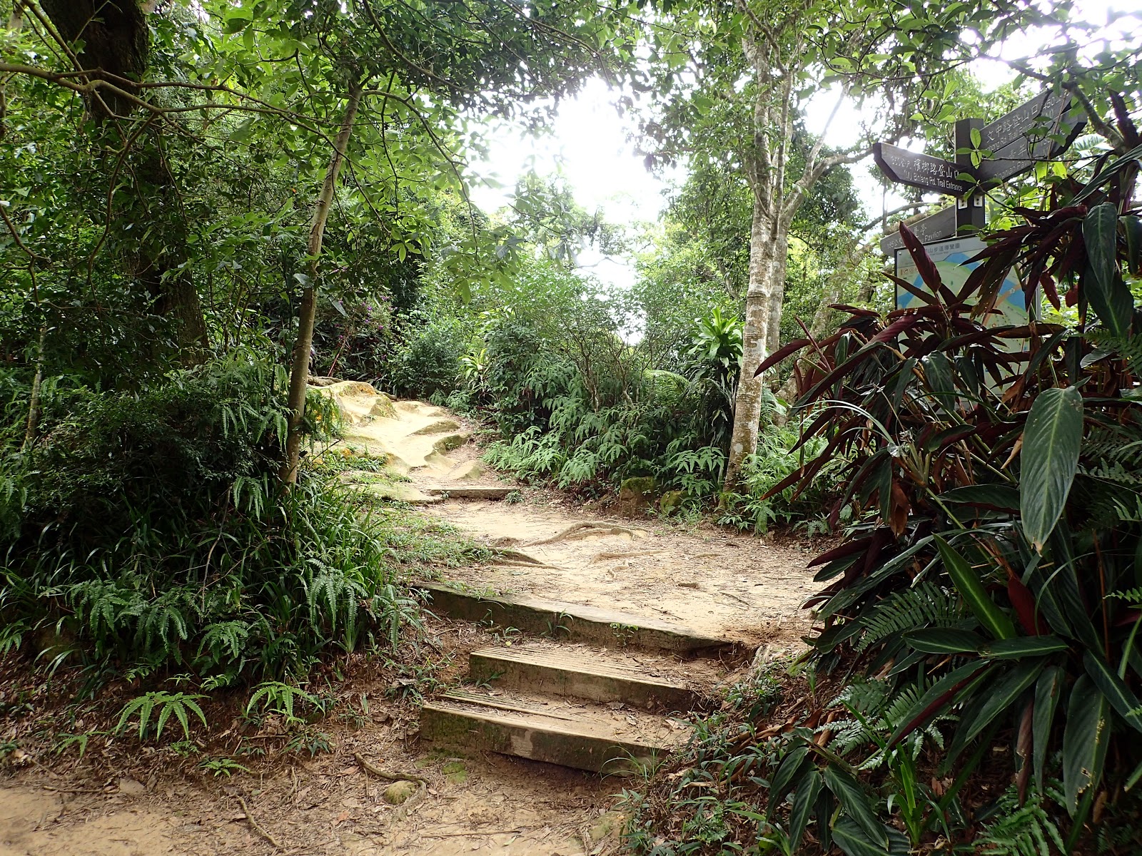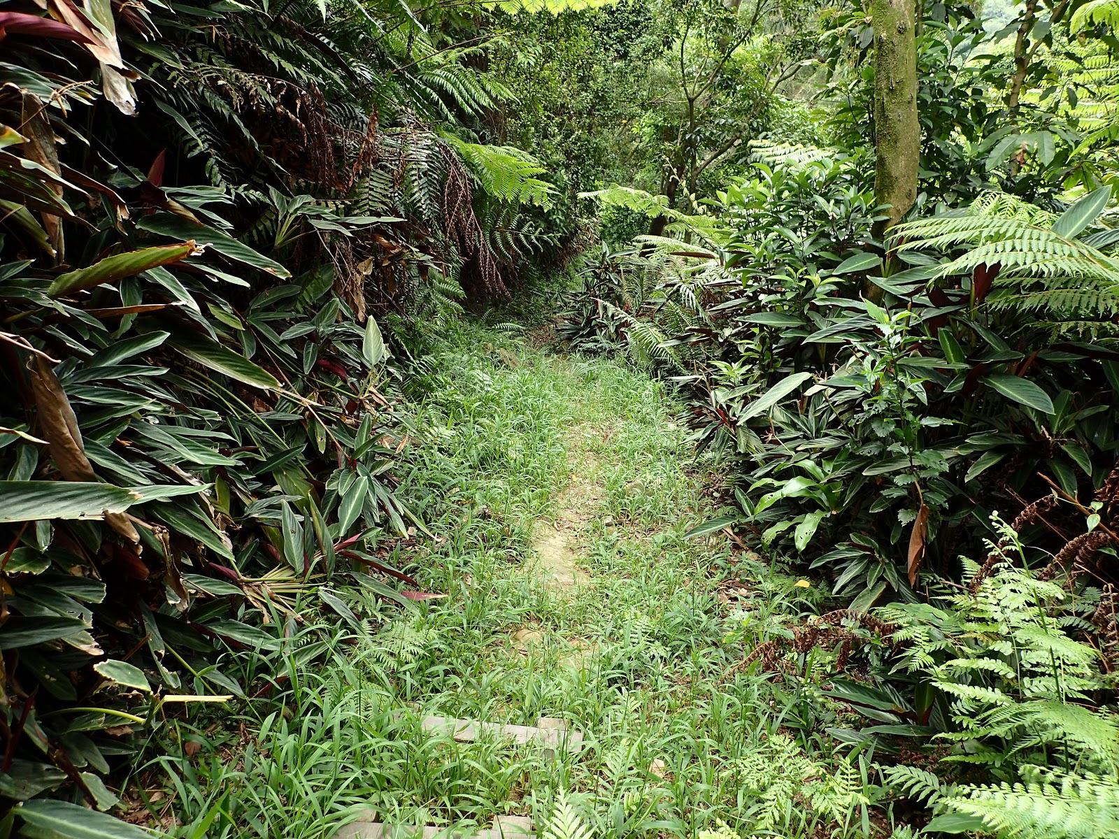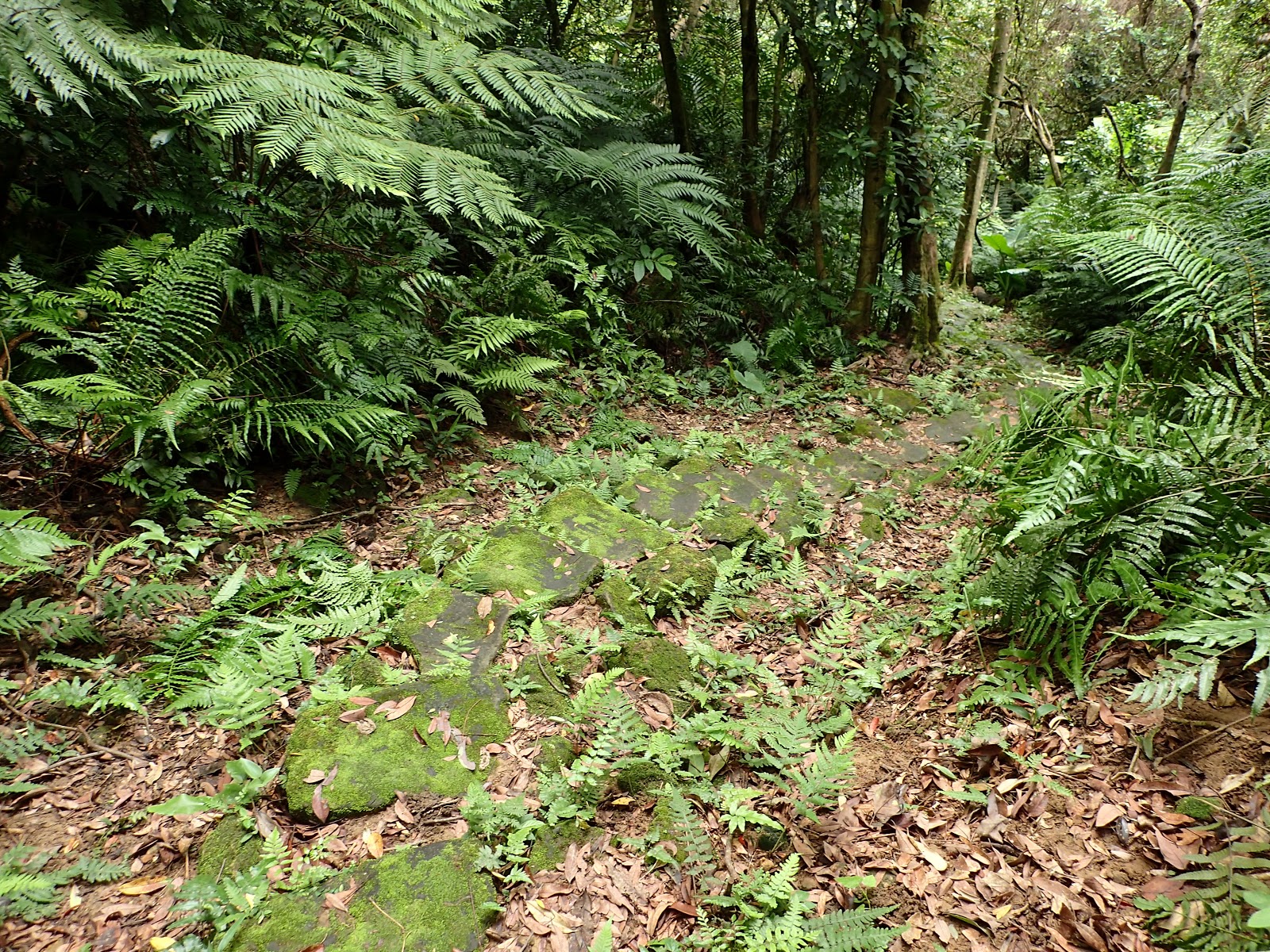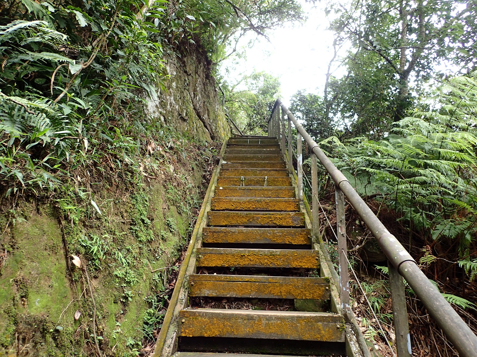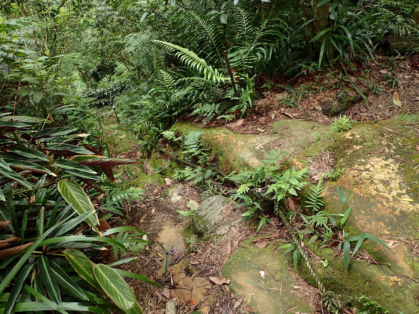 沒走過的路線, 看起來偏僻很少人走樣, 雜草叢生, 石階上滿佈青苔, 旁邊有拉繩, 應該行吧...試試看