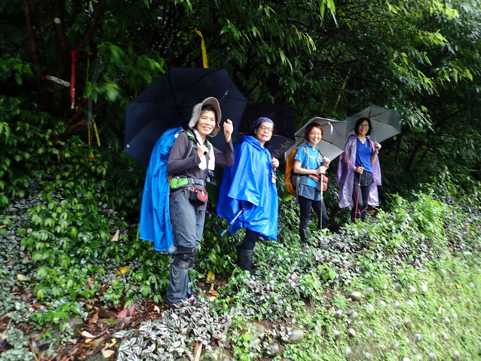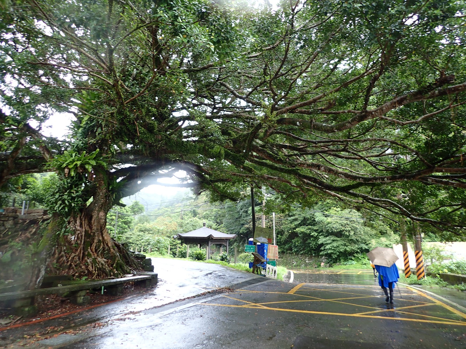 Liuyu約爬二格山-猴山岳, 一直錯過想走的行程, 趕緊+1, 9:00接我後去大坪林接明姐和淑芬,再回頭接ㄚ貞, 诶, 人呢? 等了會, 正考慮給她放生時, 電話響起, 呵呵, 原來是找不到停車位, 車行來到草湳大榕樹, 10:00整裝出發