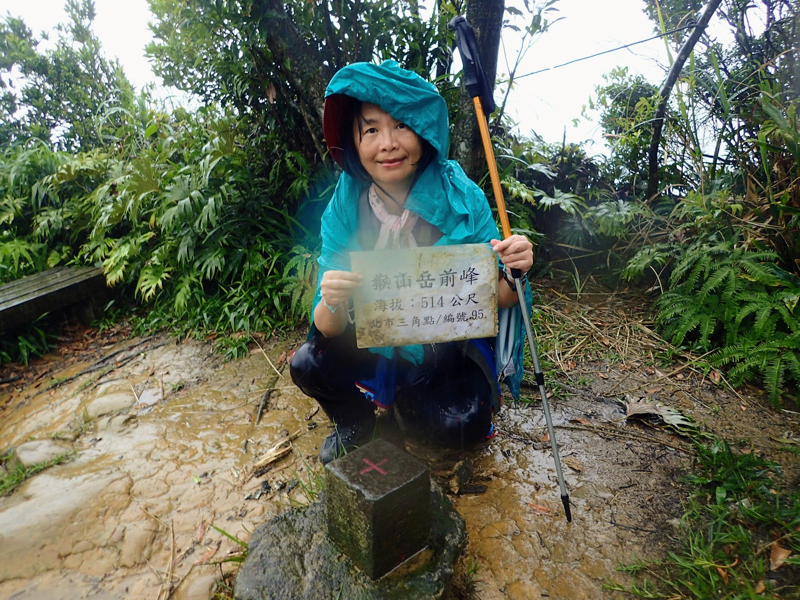 2:20 終於, 我們上到了猴山岳! 快速拍了張合照, 嗚, 雷雨實在太大, 落跑都來不急, 慌忙中忘了拍個人登頂照, 猴山岳, 高度551公尺, 土地調查局圖根點