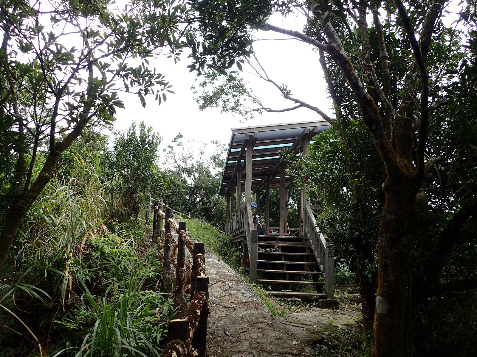 旁邊是觀景台, 從護欄躦進上涼亭, 餓了, 準備用餐