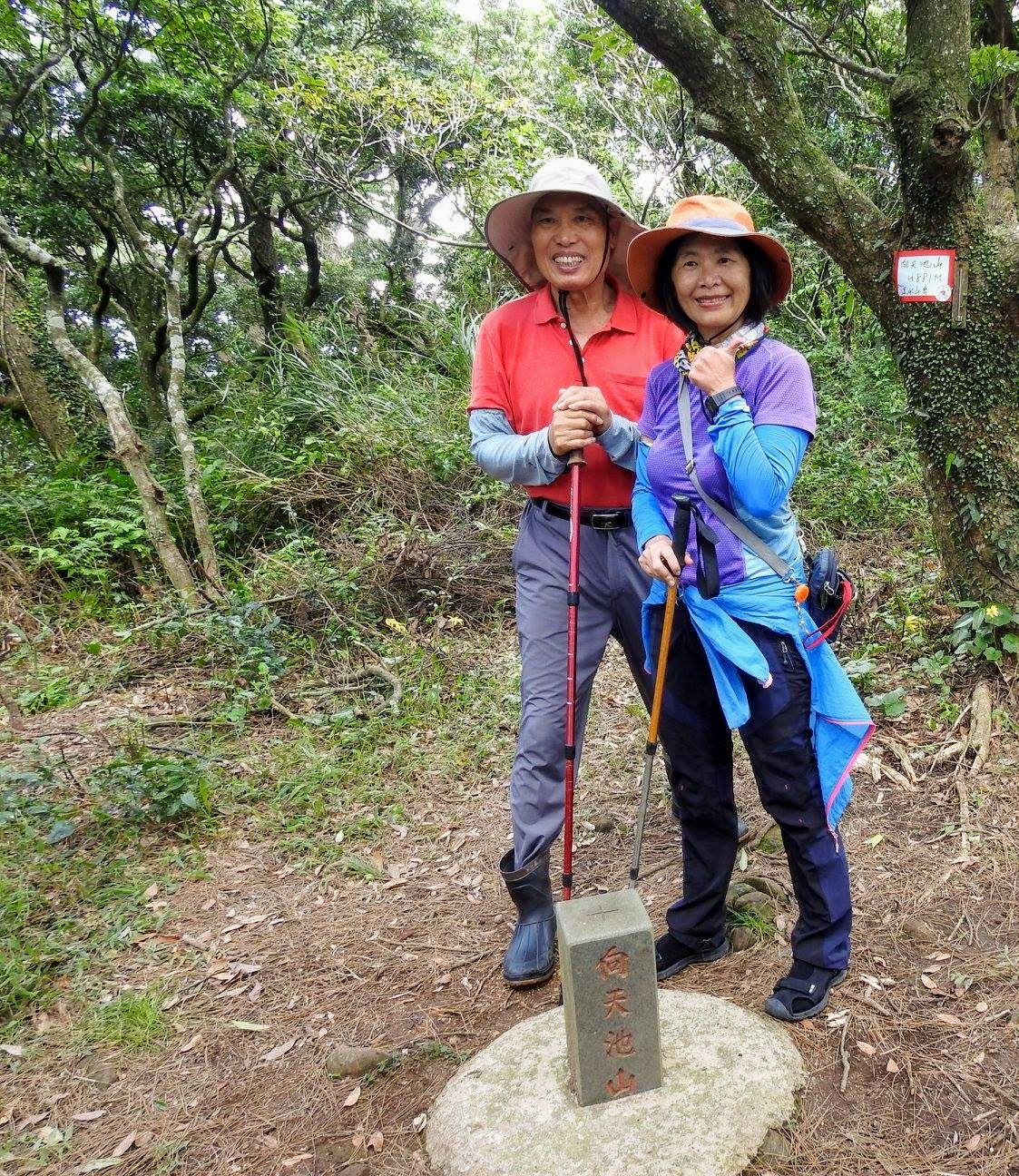 12:00 向天池山, 海拔881公尺, 有一座很新的基石, 跟好久不見的達哥來張合照, 達哥生日快樂!