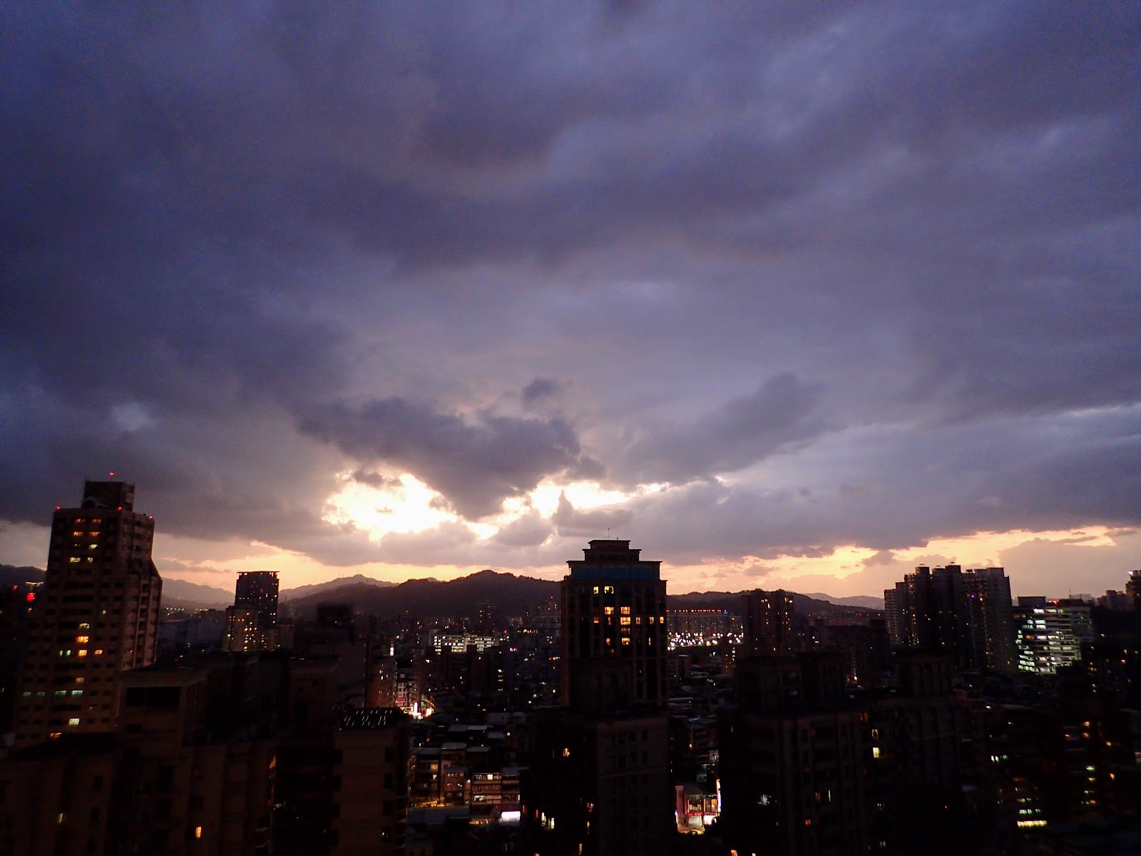 回到家後還很早, 補睡一下起來頭有點疼, 是山上吹風所致? 看到窗外出現霞光烏雲