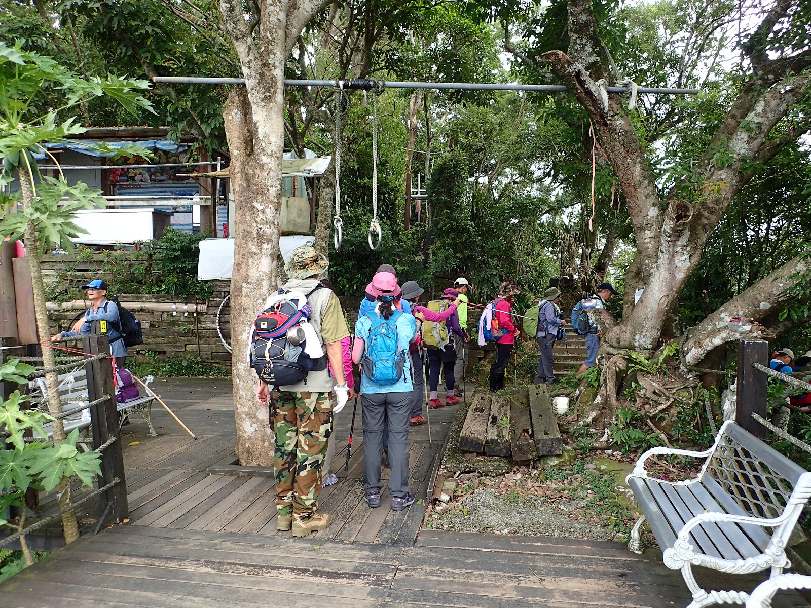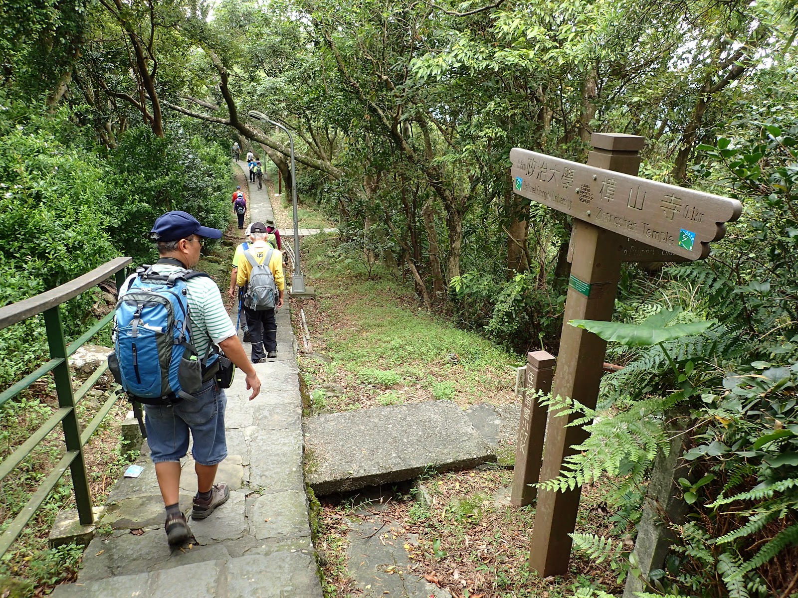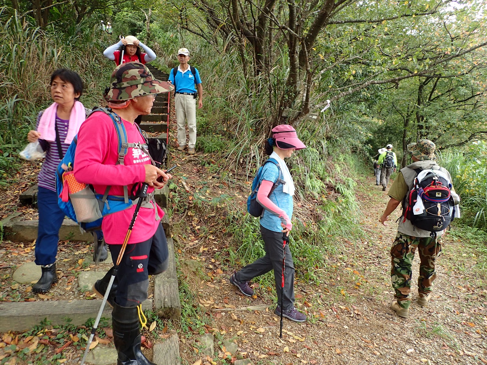 突然有一大群登山客魚貫上來, 诶, 是添丁大哥耶, 還有後面那位同學妳好面熟, 才想起台北市登山會朝陽隊今天行程就是新店小獅山-大香山-待老坑山-樟山寺-政大, 一直想知道怎麼串連, 加上同學鼓吹, 就跟著屁股走了