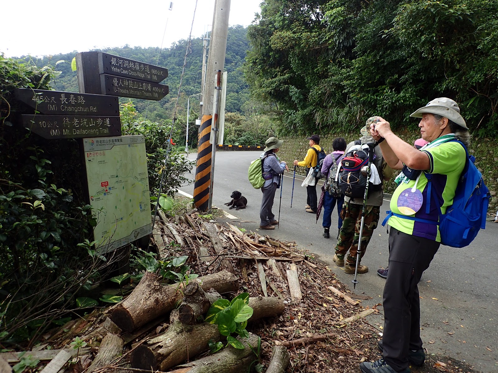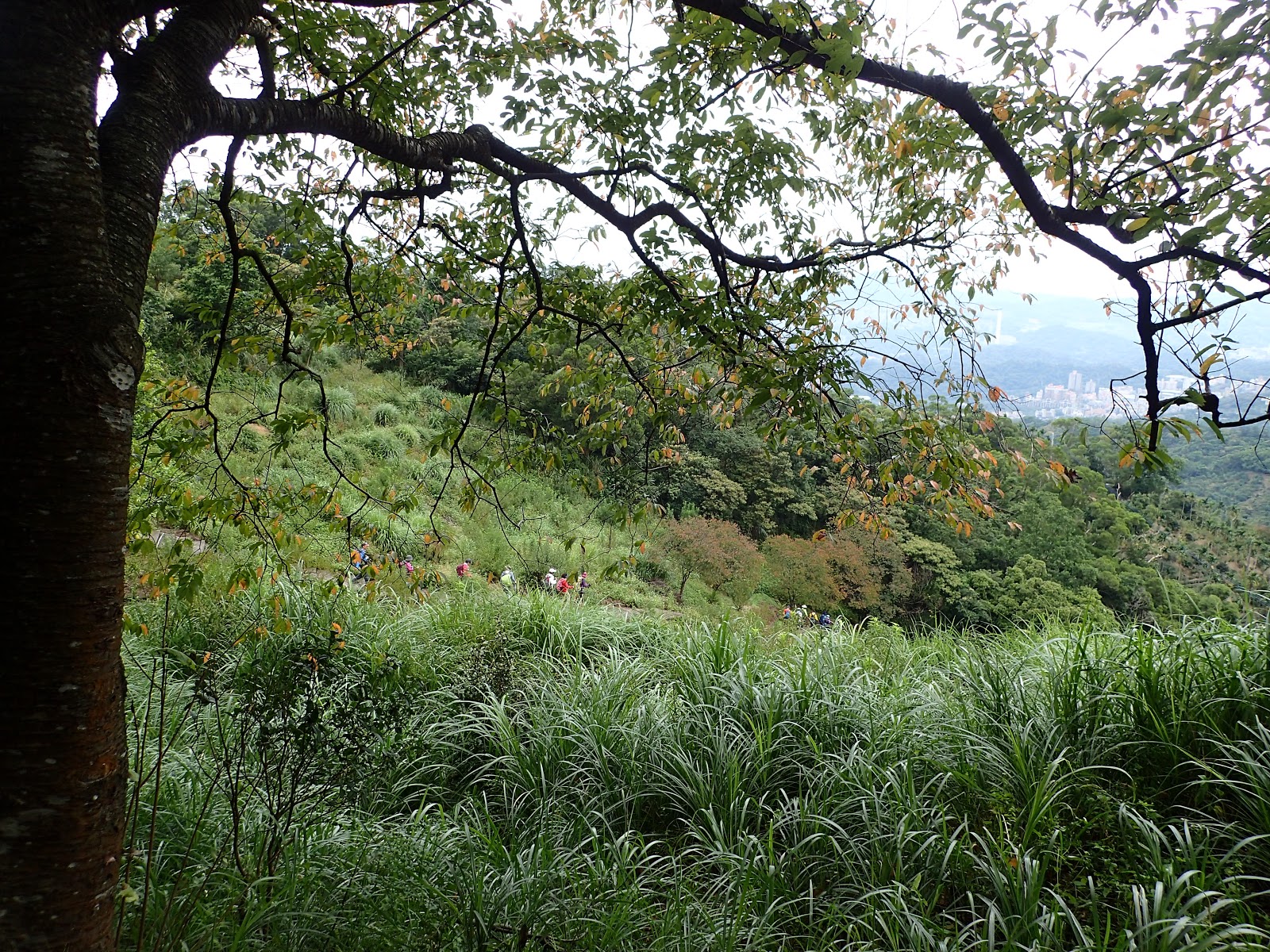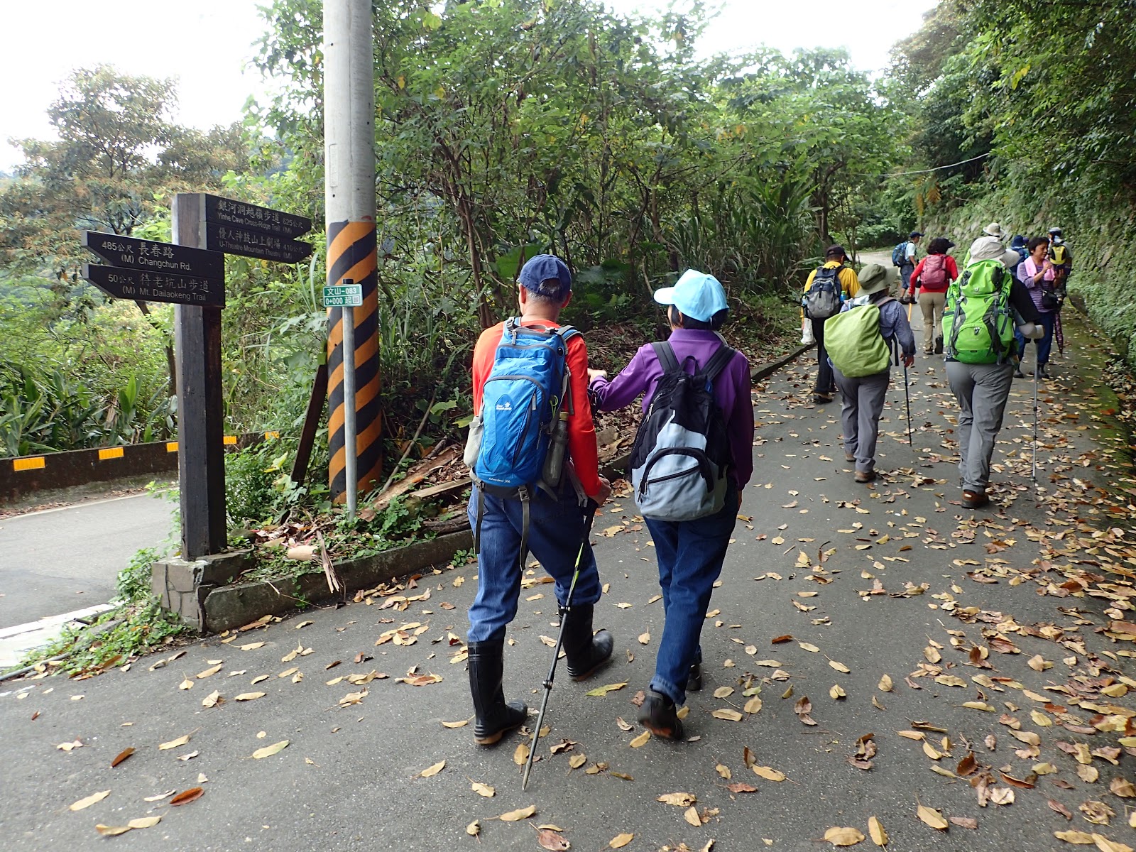 突然有一大群登山客魚貫上來, 诶, 是添丁大哥耶, 還有後面那位同學妳好面熟, 才想起台北市登山會朝陽隊今天行程就是新店小獅山-大香山-待老坑山-樟山寺-政大, 一直想知道怎麼串連, 加上同學鼓吹, 就跟著屁股走了