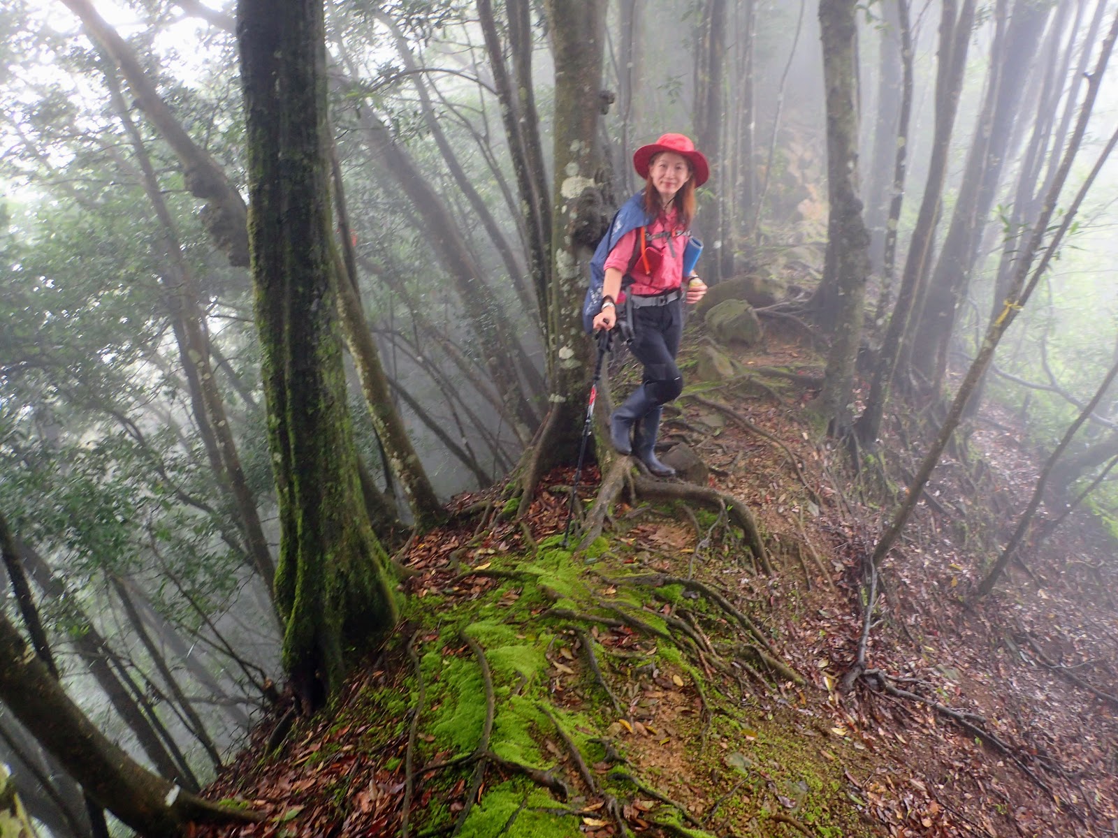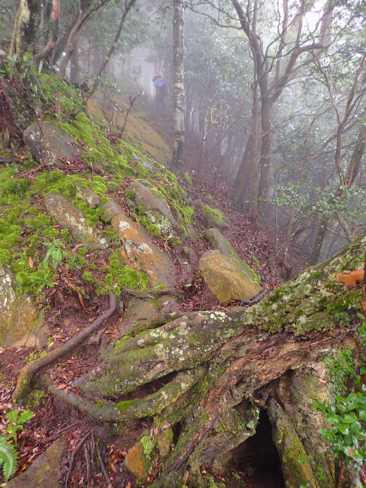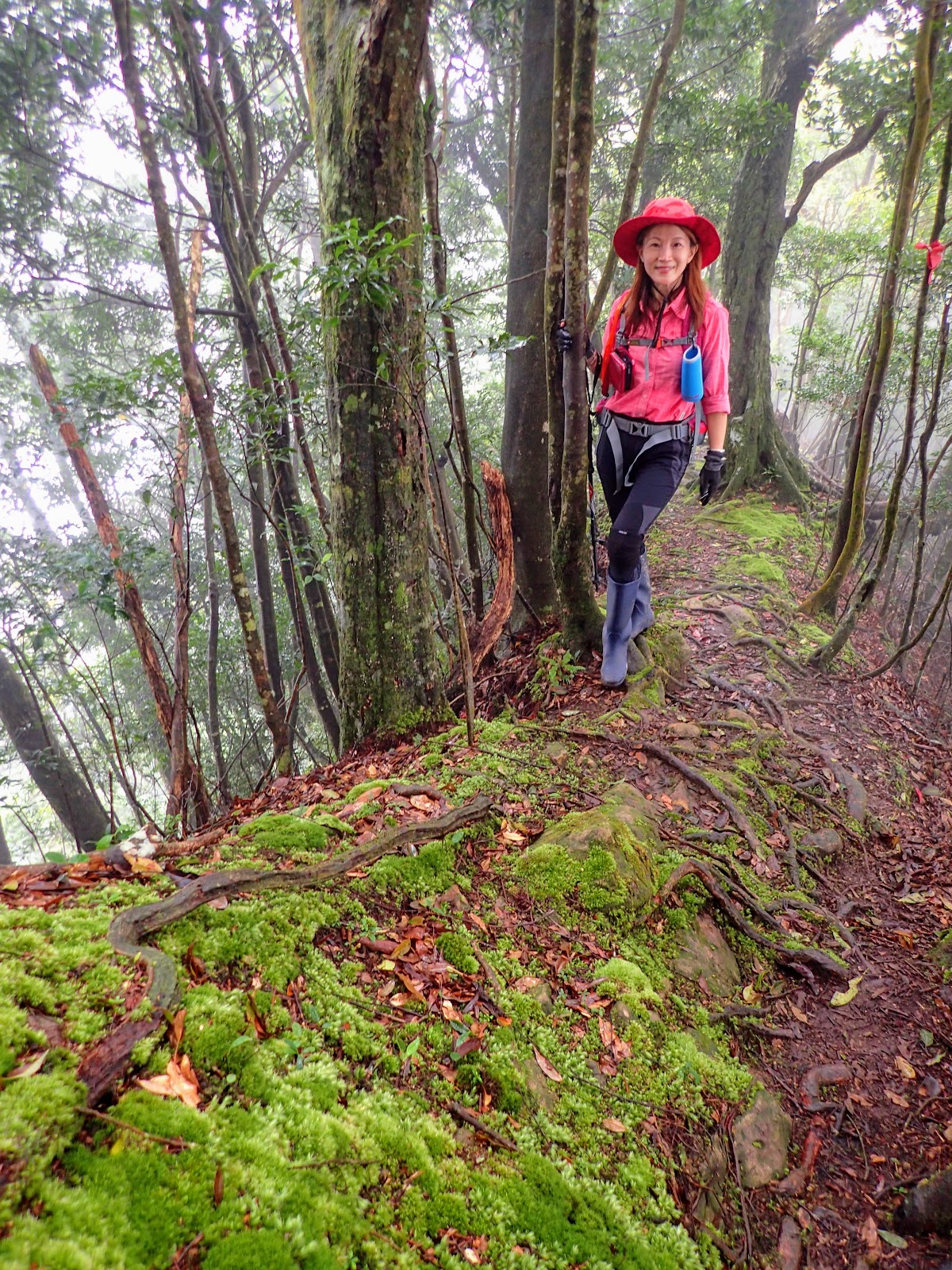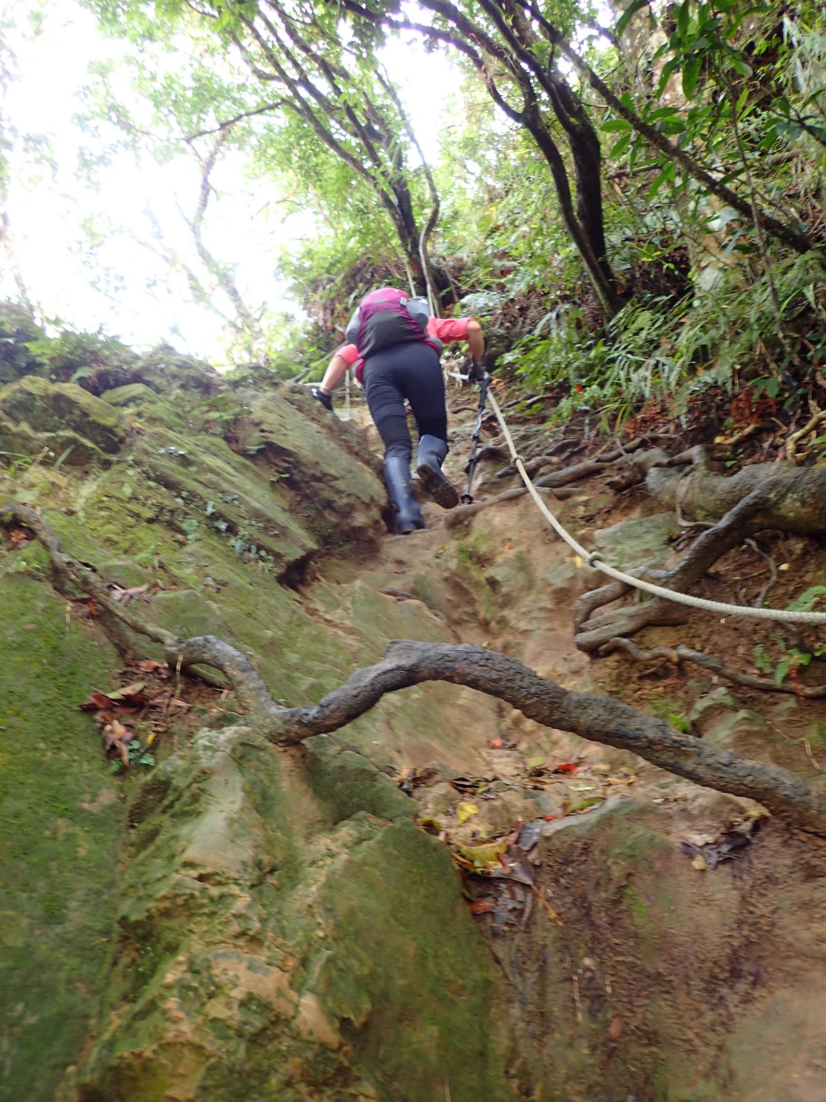 樹根盤纏+青苔+濕滑泥路, 考驗著我們