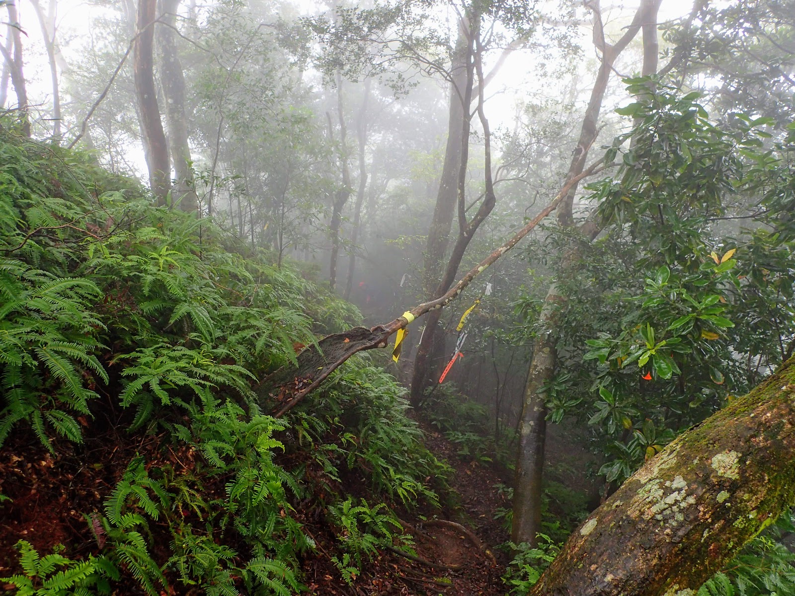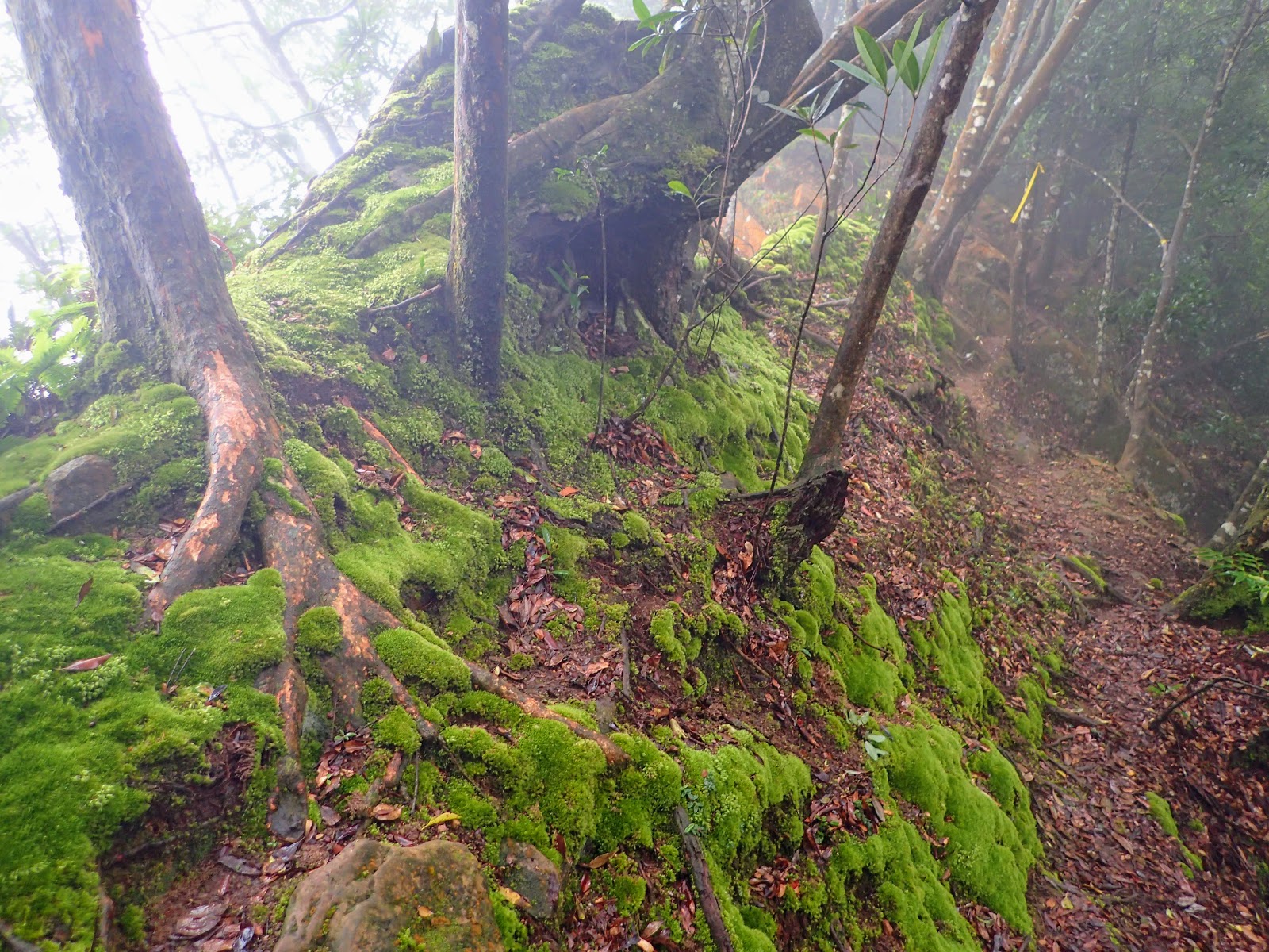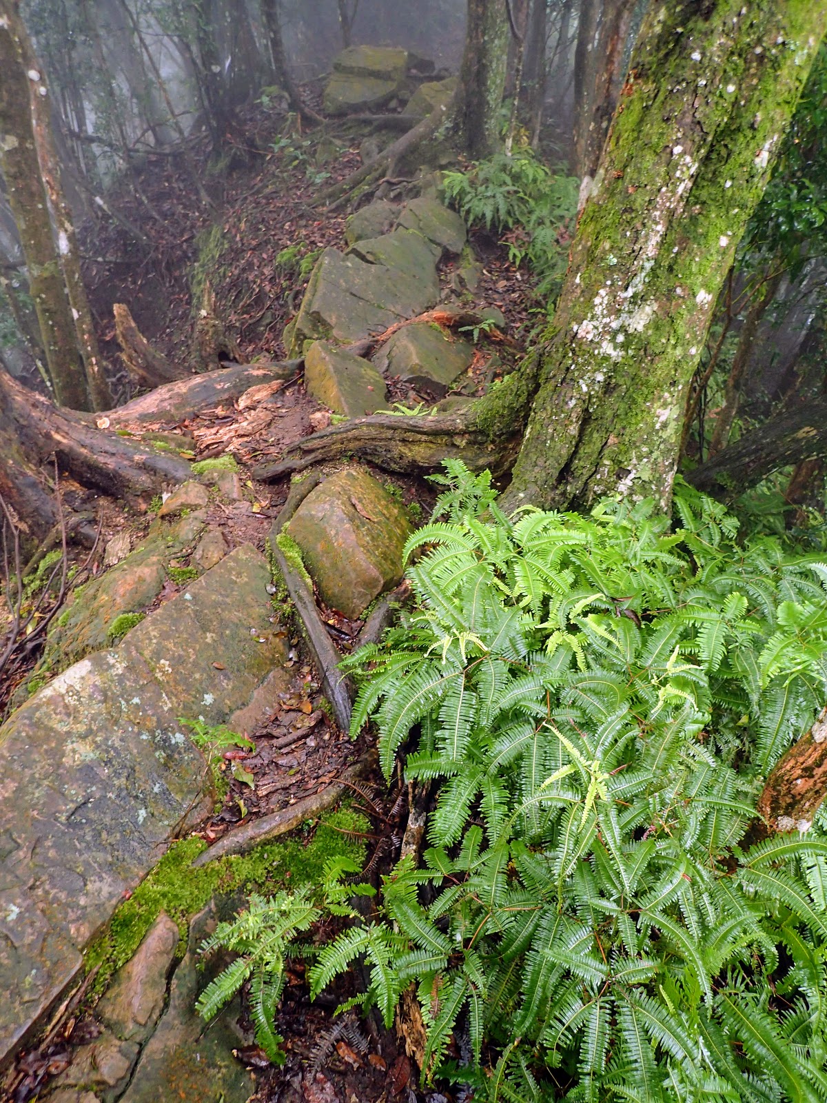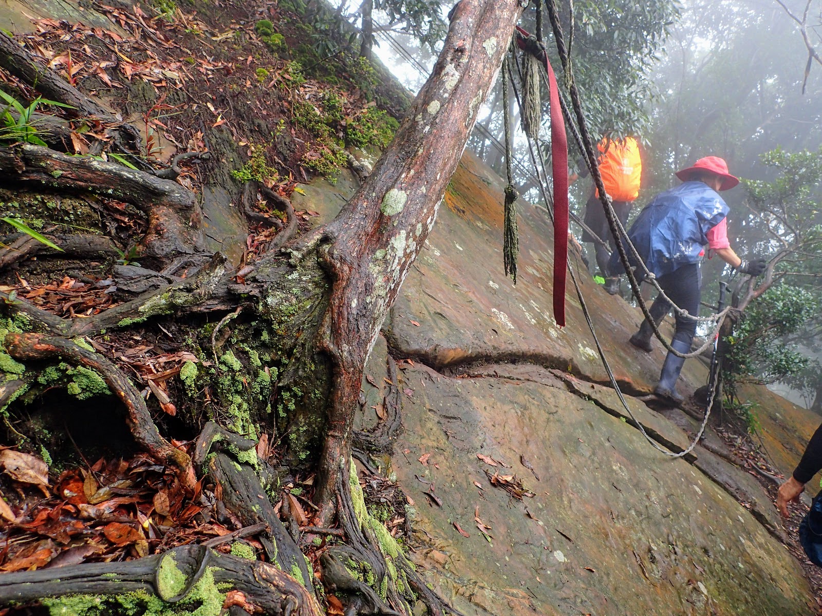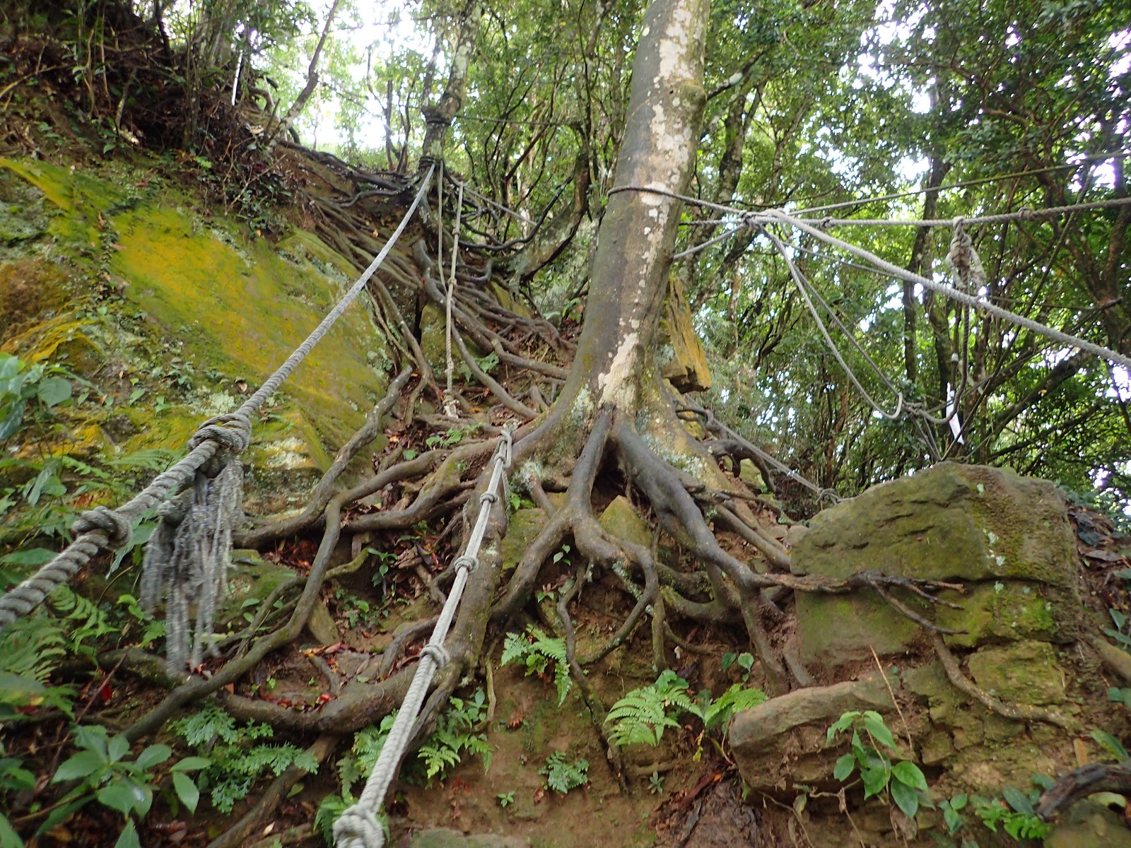 樹根盤纏+青苔+濕滑泥路, 考驗著我們